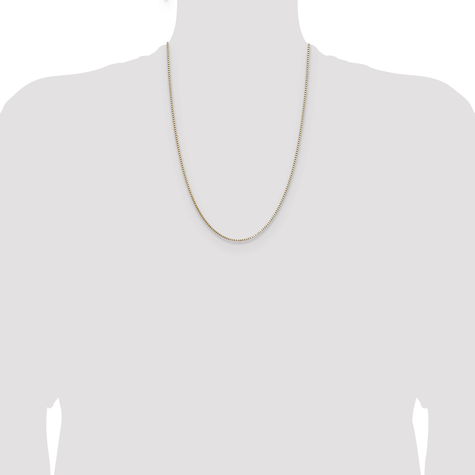 The 14K Yellow Gold 14K 1.10mm Box Chain necklace is a sleek and versatile piece perfect for everyday wear. Crafted from solid 14K gold, its polished finish enhances its bright, warm hue. Measuring 24 inches long, this classic chain features a sturdy lobster clasp that stays secure. At just 1.1mm wide, it offers a delicate look with great strength. Made with precision, the chain is machine-produced for quality and durability. The 14K Yellow Gold 14K 1.10mm Box Chain is a great choice to elevate any style with timeless charm and a lifetime guarantee for peace of mind.