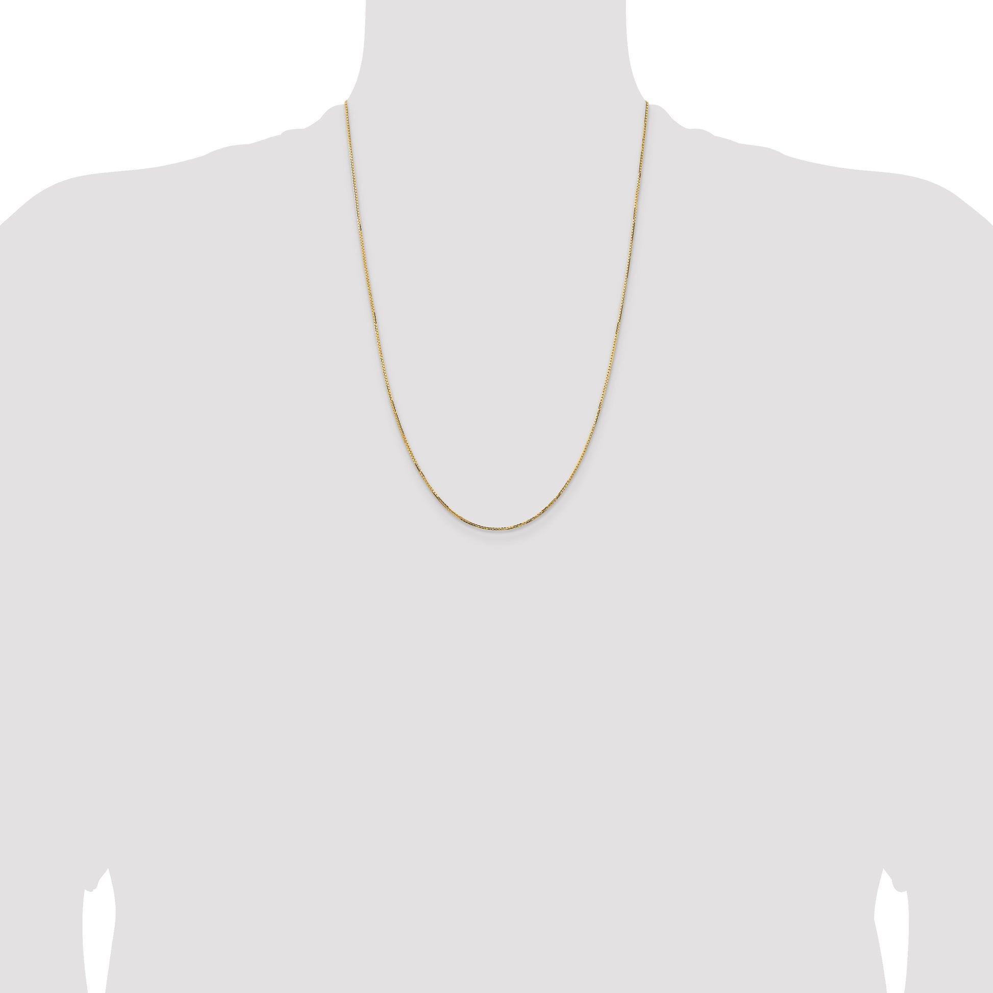 The 14K Yellow Gold 14K 1.10mm Concave Box Chain is a sleek and sturdy piece perfect for everyday wear. Made from high-quality 14K gold, this chain features a polished finish that catches the light beautifully. Its unique concave design adds a touch of style, making it stand out. Measuring 24 inches long, it offers a comfortable fit around the neck. The durable lobster clasp ensures secure closure, while the solid build guarantees lasting quality. The 14K Yellow Gold 14K 1.10mm Concave Box Chain combines elegance with durability, making it a smart addition to any jewelry collection.