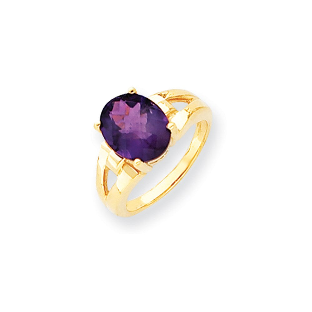 14k Yellow Gold 11x9mm Oval Amethyst Checker ring