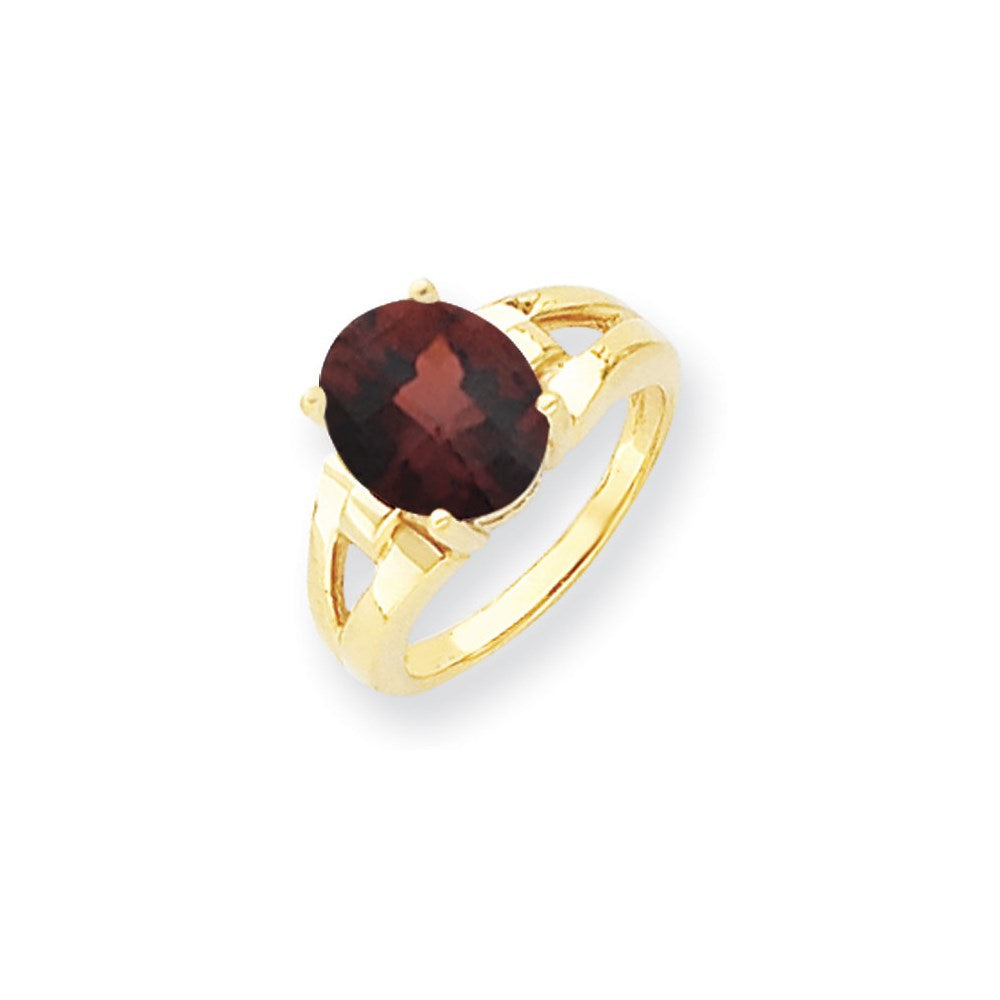 14k Yellow Gold 11x9mm Oval Garnet Checker ring