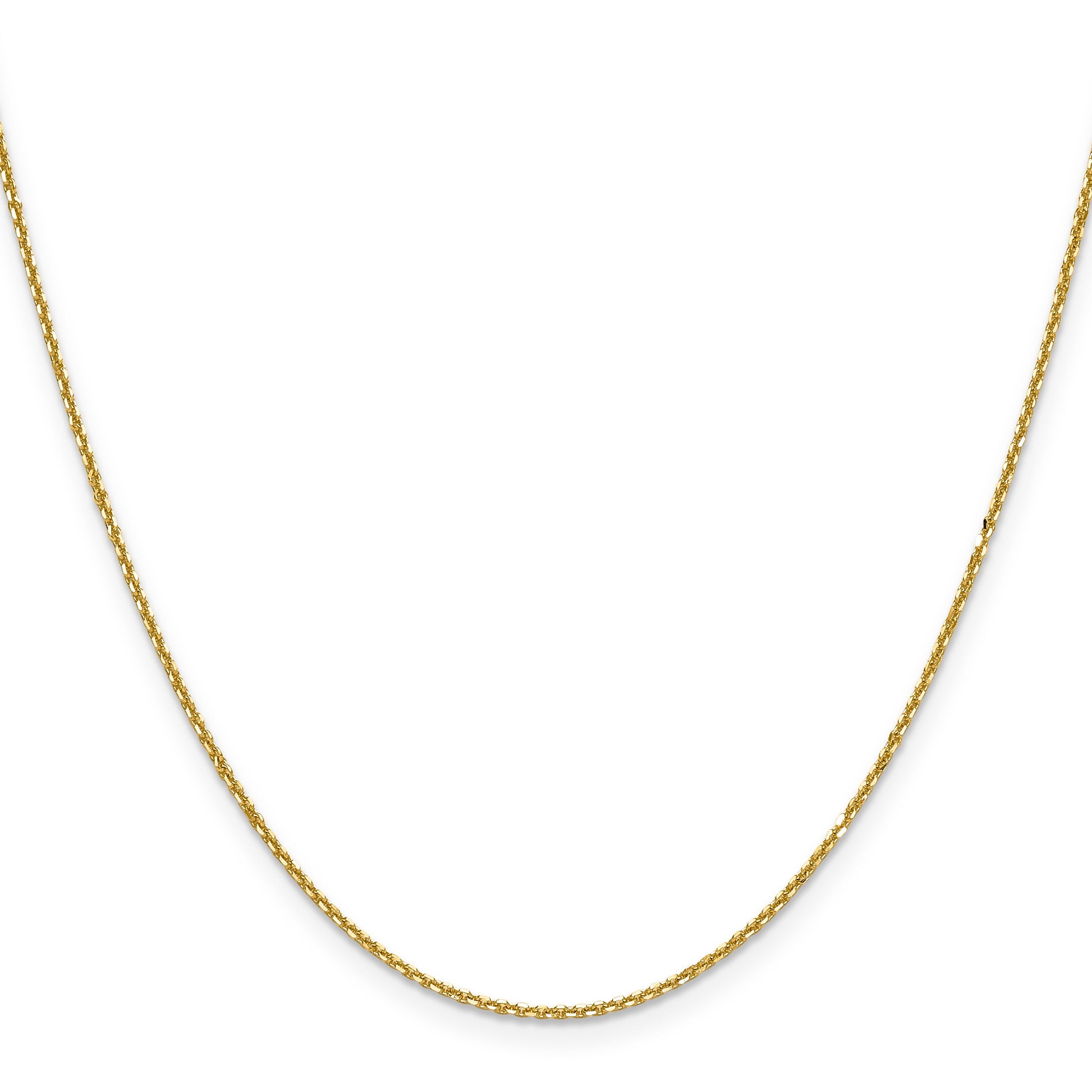 Introducing the 14K Yellow Gold 14K 1.25mm D/C Round Cable Chain. Crafted from pure 14K gold, this chain boasts a polished shine and a sturdy lobster clasp for a secure fit. Measuring 20 inches long, it’s perfect for everyday wear or layering with other pieces. Its sleek 1.25mm width offers a subtle yet stylish look. Designed for durability, this chain comes with a lifetime guarantee, so you can enjoy it for years. The 14K Yellow Gold 14K 1.25mm D/C Round Cable Chain stands out with its clean, classic style and quality.