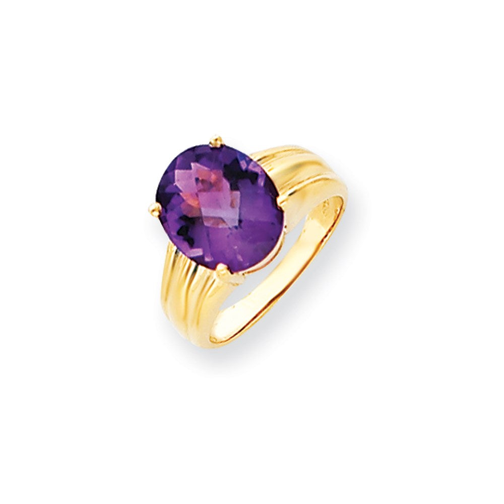 14k Yellow Gold 12x10mm Oval Amethyst Checker ring