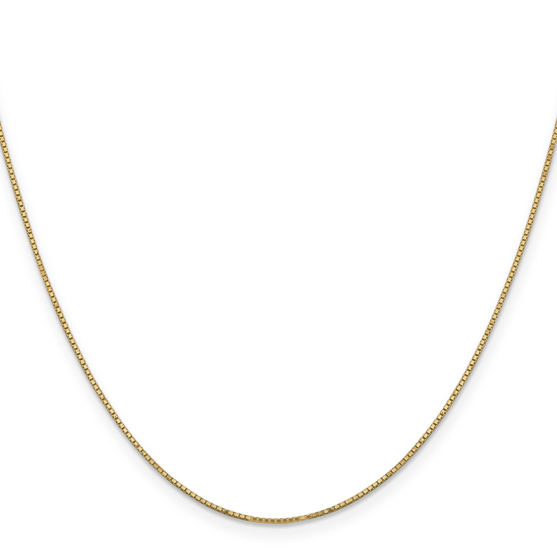 Introducing the 14K Yellow Gold 14 Inch .9mm Box Chain with Spring Ring Clasp – a timeless piece for any jewelry collection. Crafted in 14K yellow gold, this chain boasts a polished finish, enhancing its brilliant shine. Measuring 14 inches in length and .9mm in width, it features a durable box chain design. The easy-to-use spring ring clasp ensures it stays secure. Perfect for a pendant or worn alone, this solid, machine-made necklace is both elegant and versatile. Wear the 14K Yellow Gold Box Chain to add a touch of luxury to any outfit.