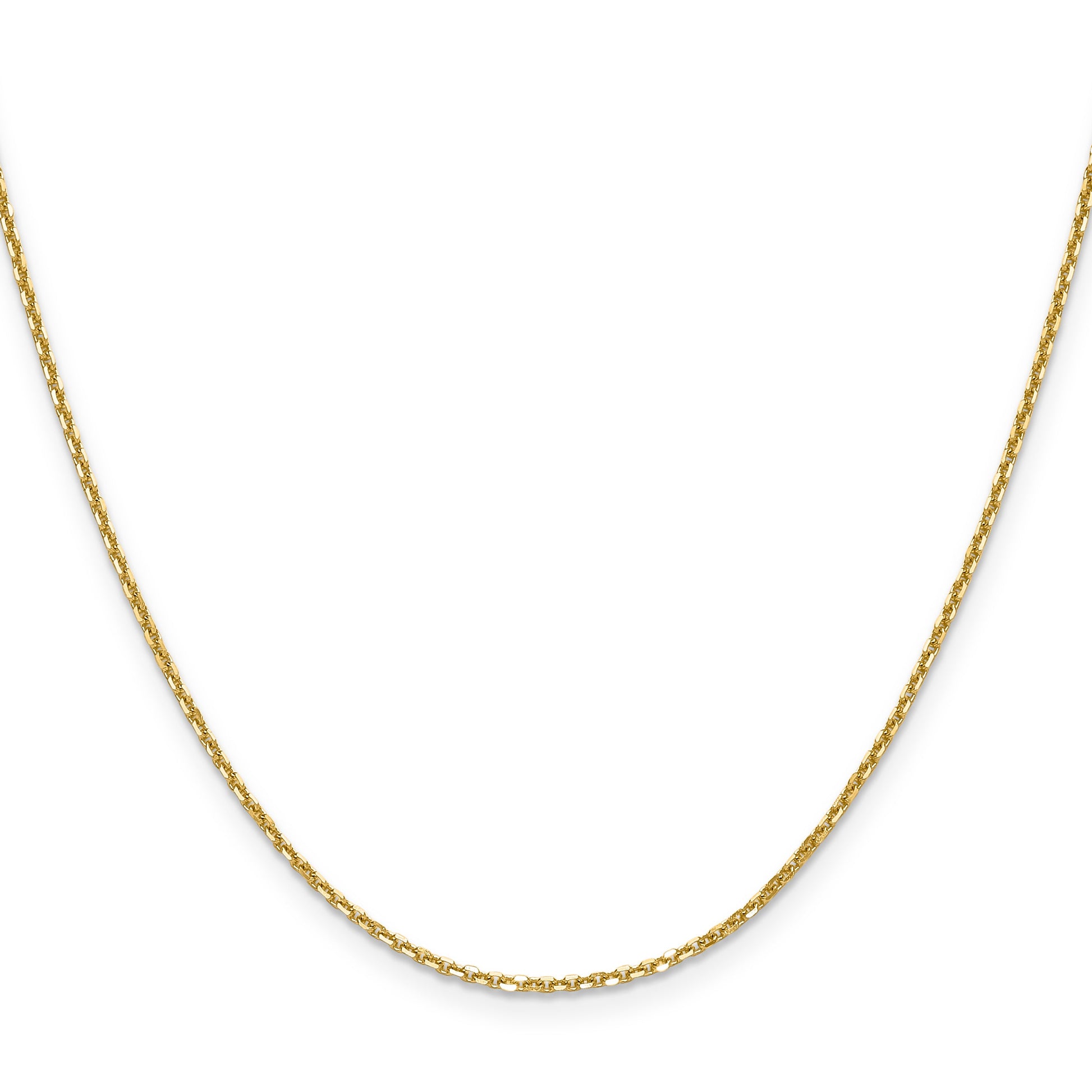 This 14K Yellow Gold 14K 1.45mm D/C Round Cable Chain offers timeless style and quality. With a polished finish, it measures 16 inches long, perfect for daily wear. The chain is crafted from durable 14K gold and features a sleek round cable design that sits comfortably on your neck. The lobster clasp ensures secure closure. Known for its strong build and elegant look, the 14K Yellow Gold 14K 1.45mm D/C Round Cable Chain makes a great gift or a staple in your jewelry collection. Its lasting shine pairs well with pendants or can be worn alone for a simple touch of gold.