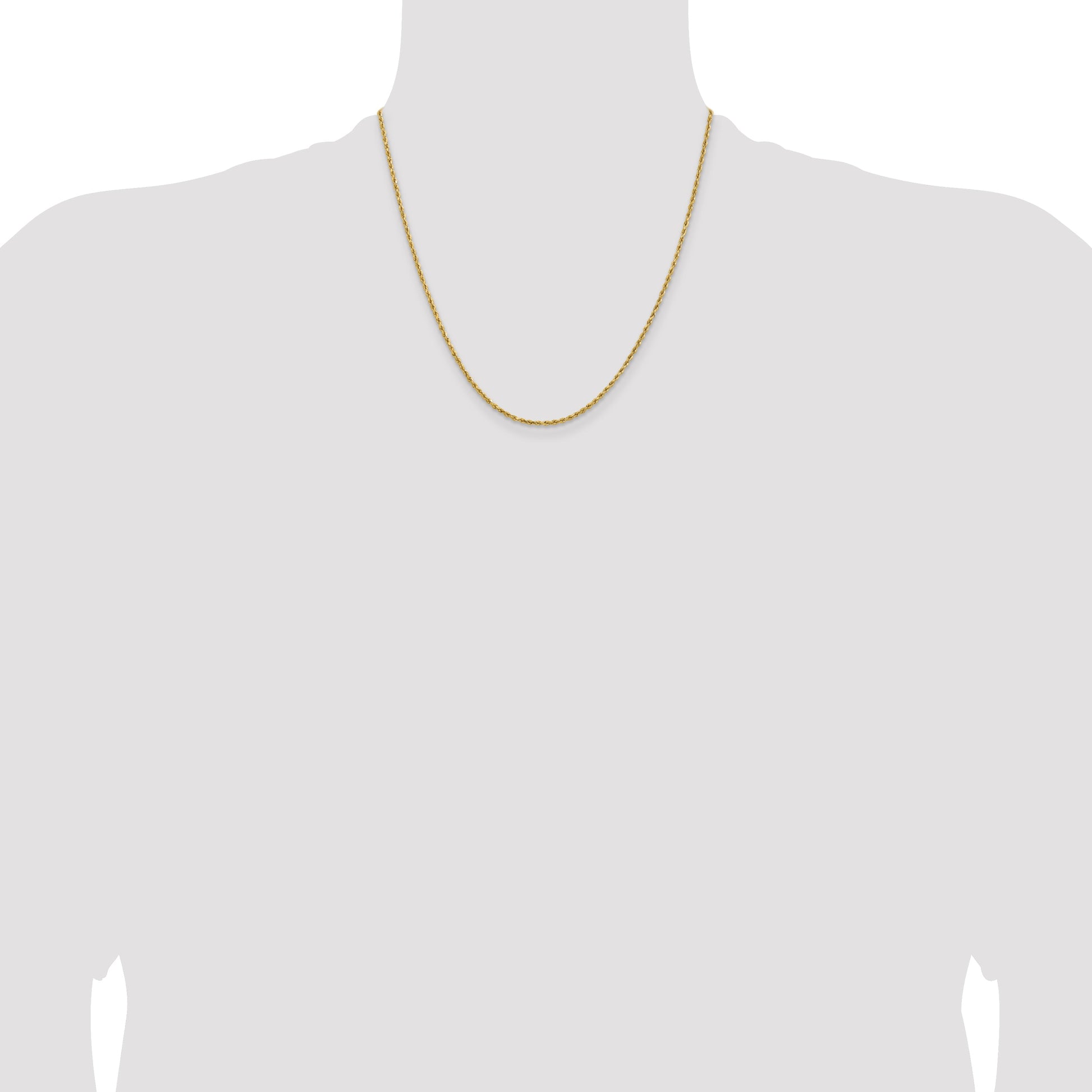 The 14k Yellow Gold 1.8mm Lightweight Diamond-cut Rope Chain is a must-have for any fine jewelry lover. Crafted in 14k gold, this 20-inch chain offers a classic look with its intricate rope design and diamond-cut texture that reflects light beautifully. The lobster clasp ensures secure wear, making it perfect for daily use. With a sleek width of 1.8mm, this necklace adds a touch of elegance to your wardrobe. Enhance your style with the timeless 14k Yellow Gold 1.8mm Lightweight Diamond-cut Rope Chain.