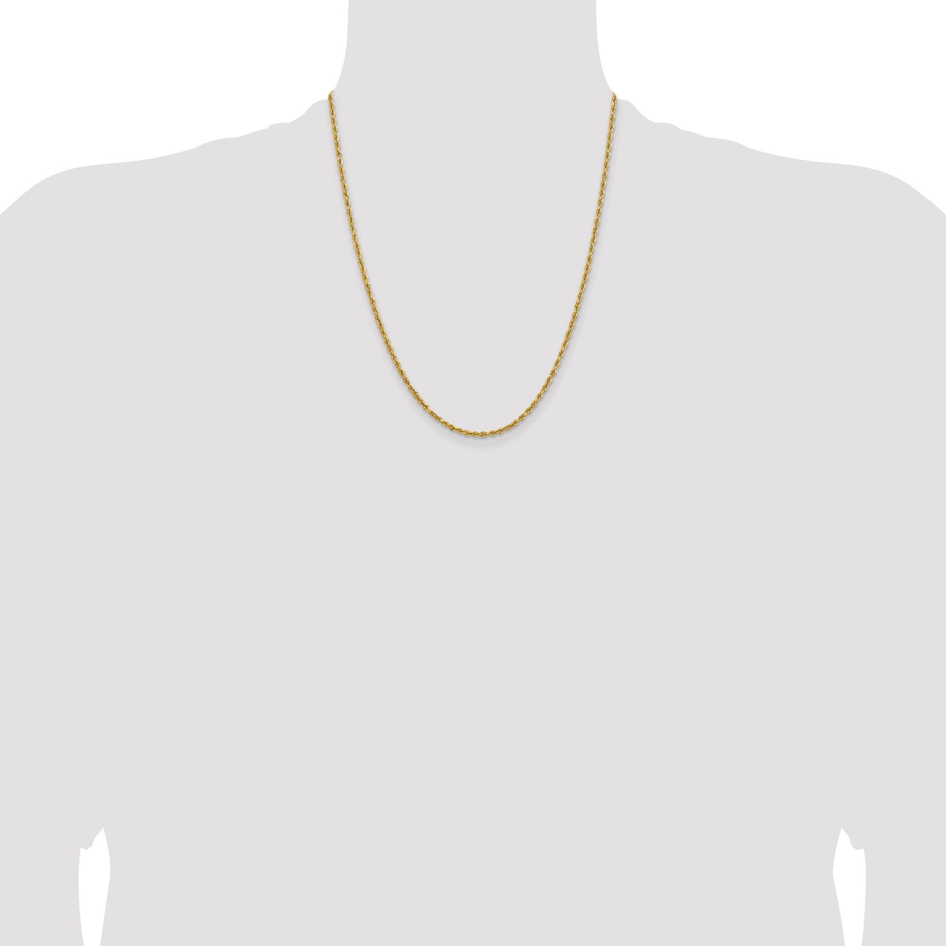 Introducing the 14k Yellow Gold 2.3mm Lightweight Diamond-Cut Rope Chain with Lobster Clasp. This 22-inch necklace, crafted from high-quality 14-karat yellow gold, combines elegance with durability. Its rope design and diamond-cut texture add a dazzling touch, while the lobster clasp ensures secure wear. Perfect for daily use or special occasions, this chain style necklace will elevate any outfit. The 14k Yellow Gold 2.3mm Lightweight Rope Chain is a timeless piece, ideal for anyone seeking both style and substance in their jewelry.