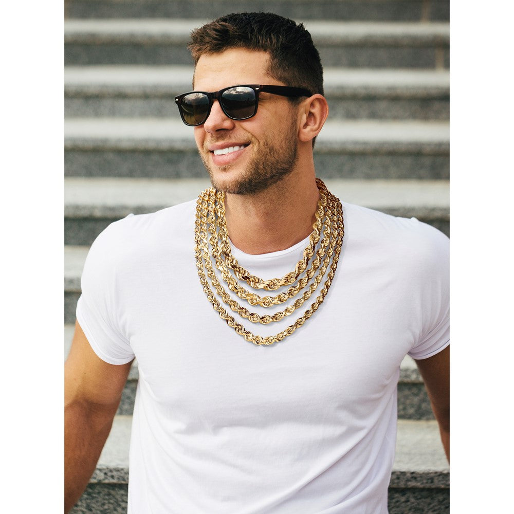 Discover the elegance of our 14k Yellow Gold 22-inch Diamond-cut Rope Chain. Crafted with meticulous attention to detail, this polished necklace catches the light with its diamond-cut texture, adding a touch of sophistication to any outfit. Measuring 10mm in width, the solid rope chain offers a substantial feel without compromising on comfort. The fancy lobster clasp ensures secure wear while enhancing the overall design. Perfect for men who appreciate fine craftsmanship, the 14k Yellow Gold 22-inch Diamond-cut Rope Chain is a timeless addition to your jewelry collection.