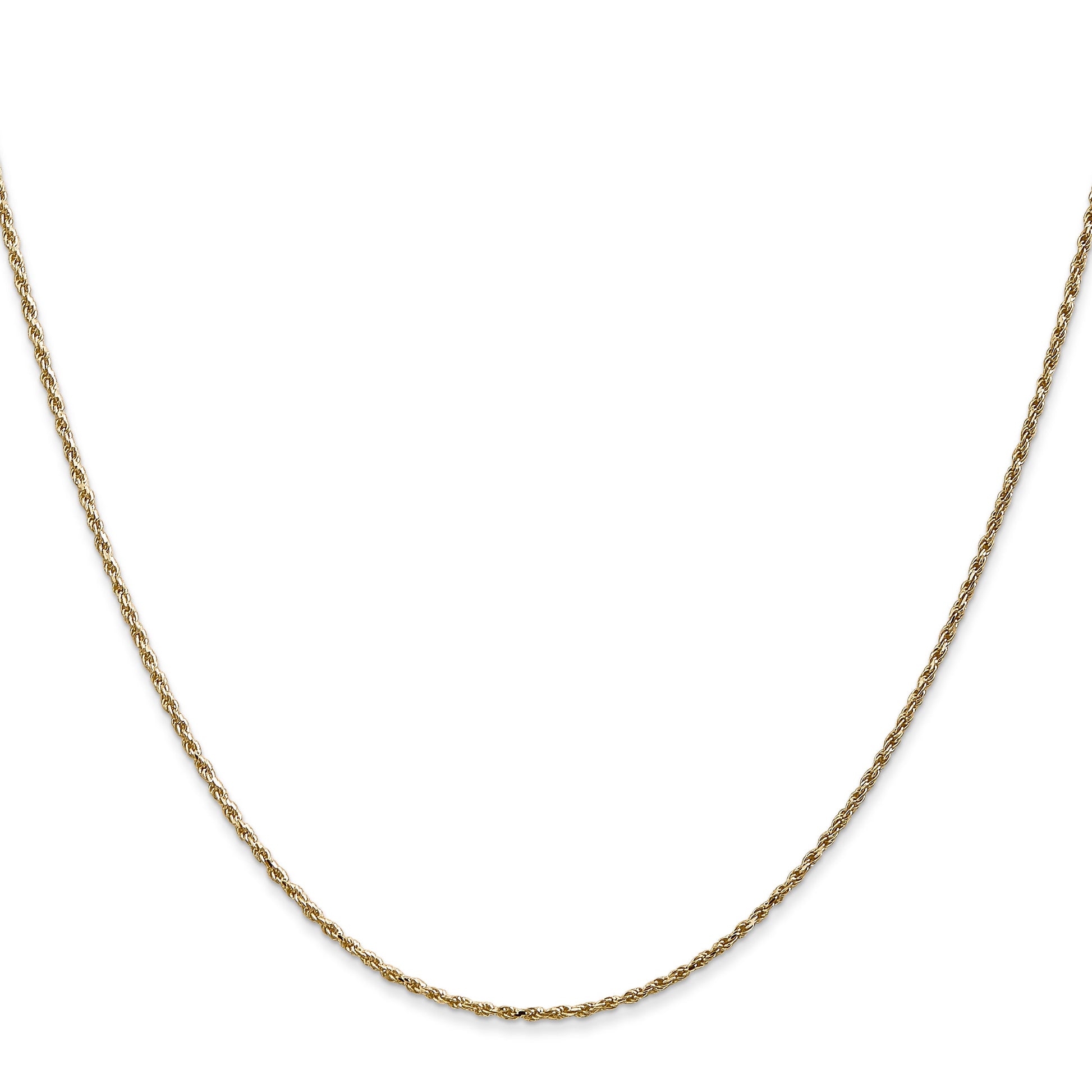 Indulge in the brilliance of the 14k Yellow Gold 24-inch Diamond-cut Machine Made Rope Chain with Lobster Clasp. This stunning piece gleams with the rich luster of polished 14k gold and features a solid, diamond-cut texture. Its 1.15mm width and 24-inch length make it the perfect accessory for any outfit, providing elegance and versatility. The secure lobster clasp ensures a snug fit, while the machine-made quality offers durability. Adorn yourself with the beauty and sophistication that only the 14k Yellow Gold 24-inch Diamond-cut Machine Made Rope Chain can bring.