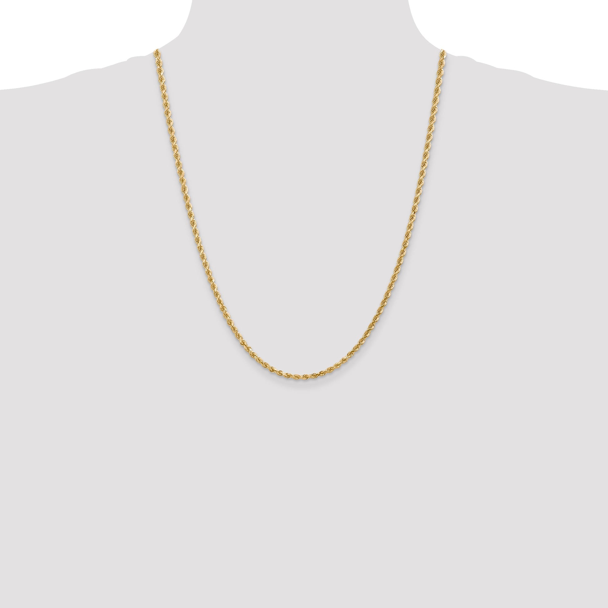 Elevate your style with the exquisite 14k Yellow Gold 24-inch 3mm Diamond-Cut Rope Chain featuring a Lobster Clasp. Crafted from genuine 14k gold, this polished necklace gleams with a rich yellow hue. The finely detailed 3mm diamond-cut design adds a touch of brilliance that catches the eye. Precision and care mark its handmade craftsmanship, ensuring lasting beauty and durability. The secure lobster clasp offers peace of mind, making it perfect for everyday elegance or special occasions. Discover the 14k Yellow Gold 24-inch 3mm Diamond-Cut Rope Chain, a timeless addition to any jewelry collection.