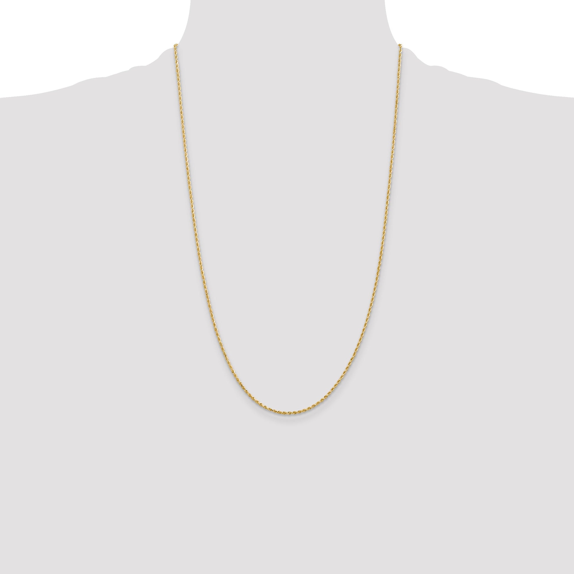 Introducing the exquisite 14k Yellow Gold 26-inch Diamond-cut Rope Chain. This polished beauty, designed for women, showcases a solid 14K gold composition with a stunning diamond-cut texture. Measuring 1.5mm in width, this delicate chain combines elegance with durability. Its 26-inch length offers versatility, perfect for any neckline. The secure lobster clasp ensures ease and safety. Handcrafted with care, this necklace embodies sophistication and timeless style. Elevate your jewelry collection with the luxurious 14k Yellow Gold 26-inch Diamond-cut Rope Chain.
