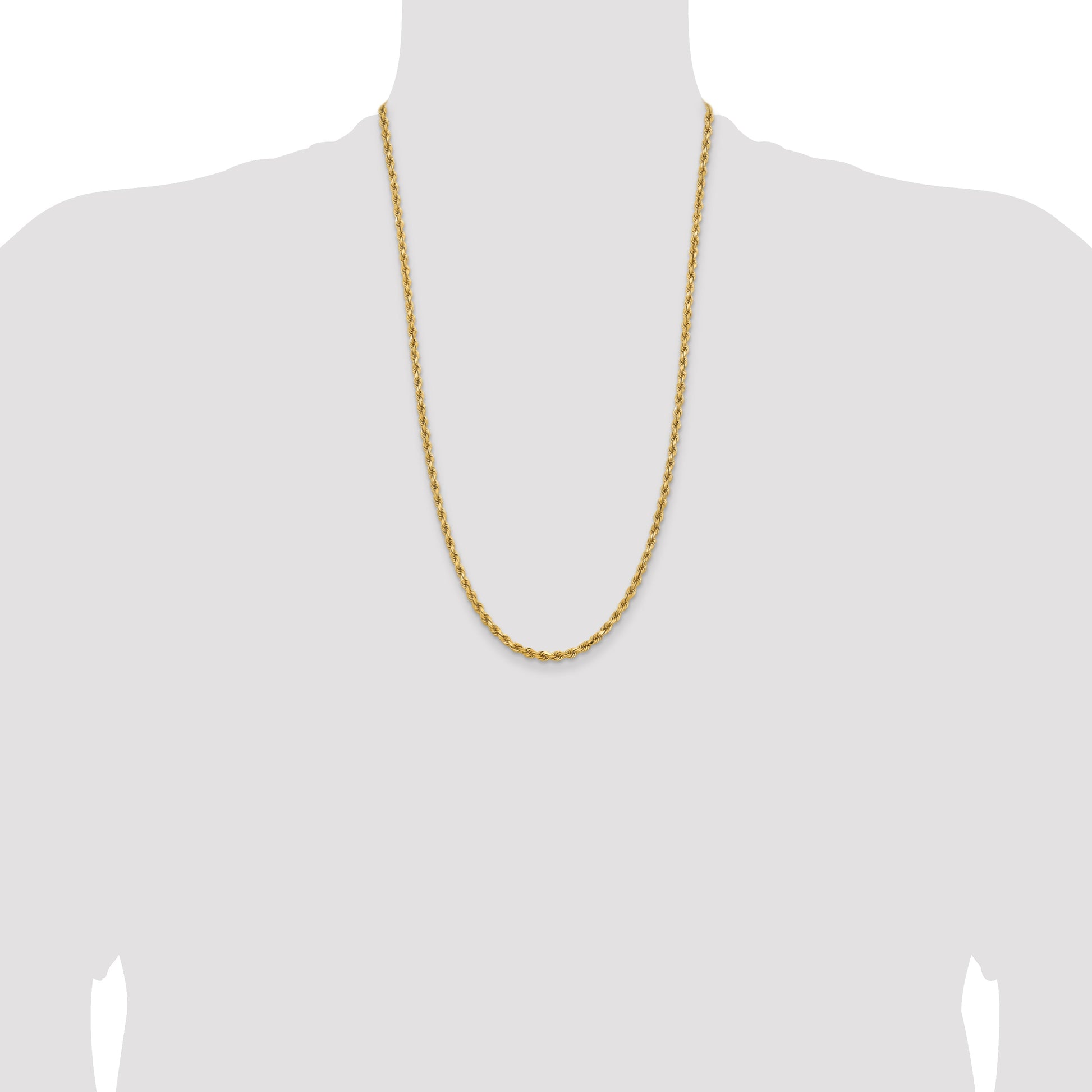 Introducing the 14k Yellow Gold 26-inch Diamond-Cut Rope Chain with Lobster Clasp. This radiant necklace features 14K solid gold, ensuring both luxury and durability. Its polished finish enhances its elegant look, making it an eye-catching accessory for any outfit. The 26-inch length and 3.75 mm width offer a bold yet refined appearance. Designed with a diamond-cut texture, it sparkles brilliantly in the light. The sturdy lobster clasp provides secure fastening. Perfect for women who appreciate fine jewelry, this 14k Yellow Gold Rope Chain is the epitome of sophistication.