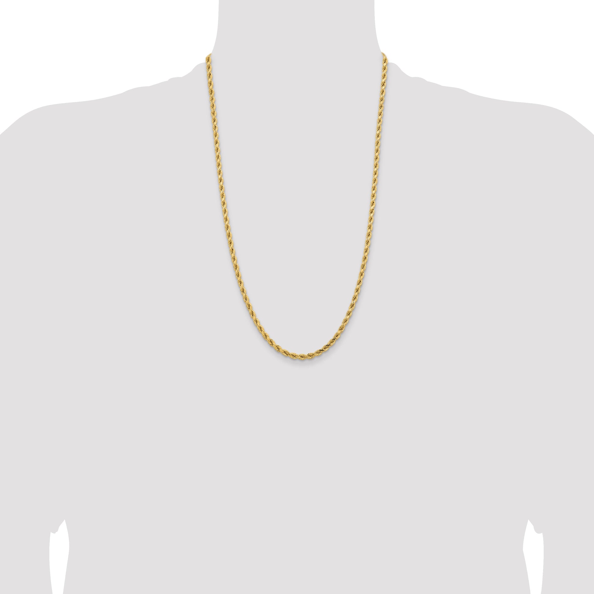 The 14k Yellow Gold 26-inch Diamond-cut Rope Chain is a stunning accessory that radiates elegance. Crafted with 14-karat gold, this 26-inch chain features a polished finish and a solid build, offering both style and durability. The 4.25mm width and diamond-cut texture add a touch of sparkle, making it a versatile piece for any occasion. The lobster clasp ensures a secure fit, allowing you to wear it with confidence. Ideal for both men and women, the 14k Yellow Gold 26-inch Diamond-cut Rope Chain is an exquisite addition to any jewelry collection.