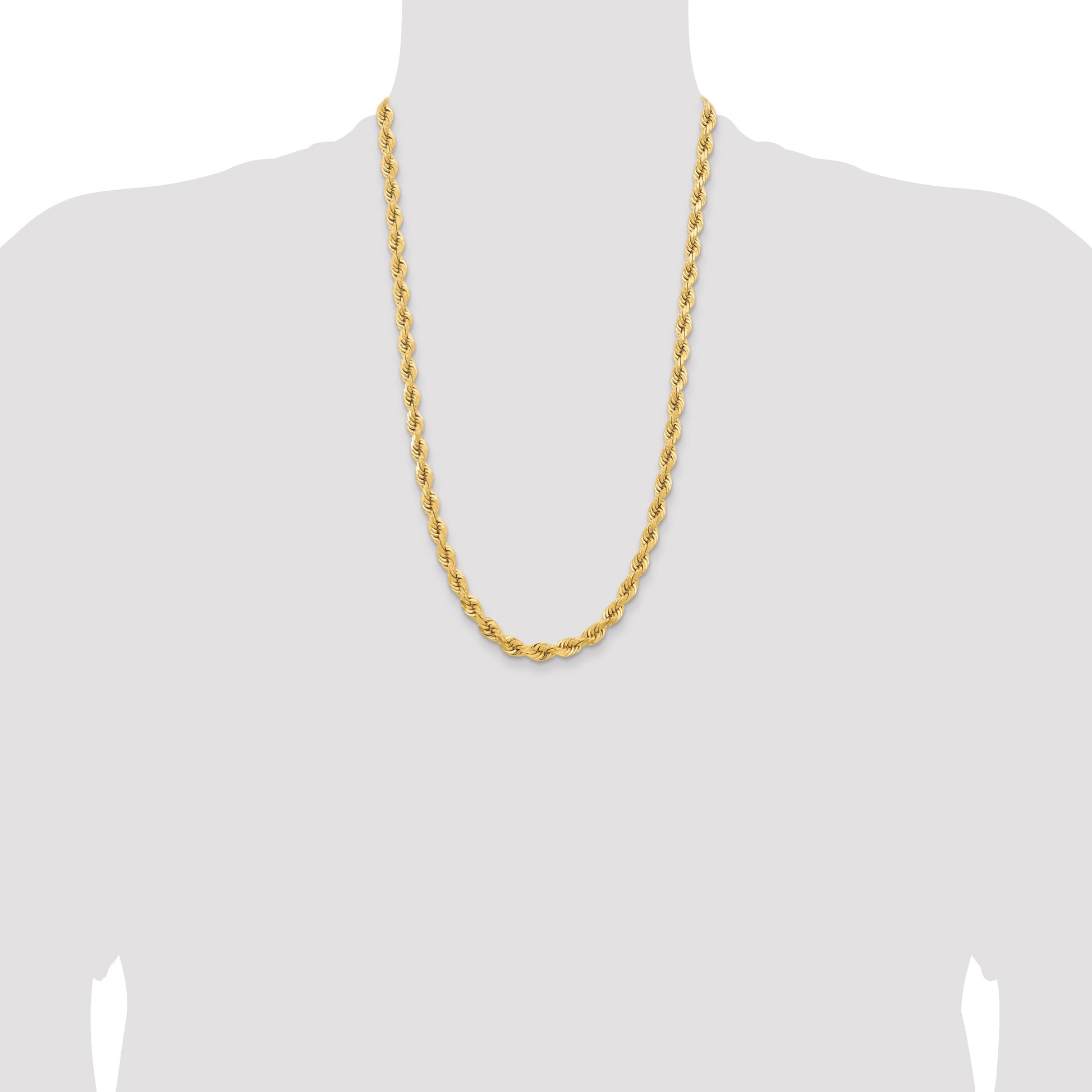 Introducing the 14k Yellow Gold 26-Inch Diamond-Cut Rope Chain with Fancy Lobster Clasp. Crafted from pure 14K gold, this chain boasts a polished finish that glistens in any light. The 26-inch length and 6.5mm width provide a substantial and elegant presence around your neck. With its intricate diamond-cut texture, this piece catches the light beautifully, adding a touch of sparkle. The fancy lobster clasp ensures a secure fit while offering ease of use. Elevate your style with the 14k Yellow Gold 26-Inch Diamond-Cut Rope Chain.
