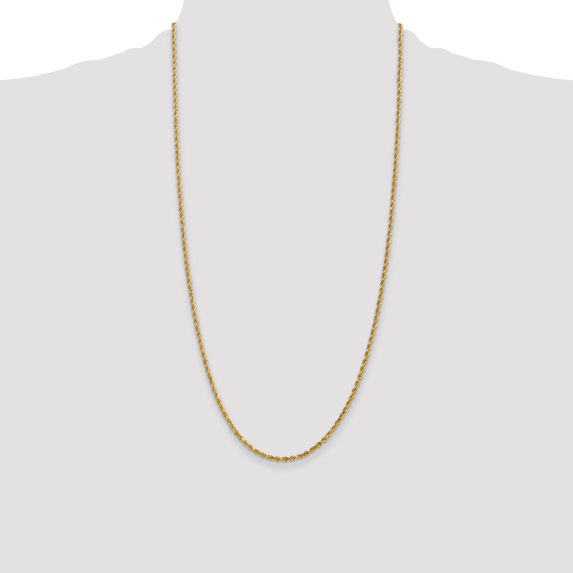 Discover the timeless elegance of the 14K Yellow Gold 28-inch Diamond-Cut Rope Chain with Lobster Clasp. This handcrafted beauty gleams with a polished finish, showcasing its high-quality 14K gold purity. Measuring 28 inches in length and 2.25mm in width, this solid rope chain offers a sleek and refined look. The diamond-cut texture adds a touch of sparkle, while the secure lobster clasp ensures it stays in place. Elevate your style effortlessly with this stunning piece, the 14K Yellow Gold 28-inch Diamond-Cut Rope Chain, perfect for any occasion.