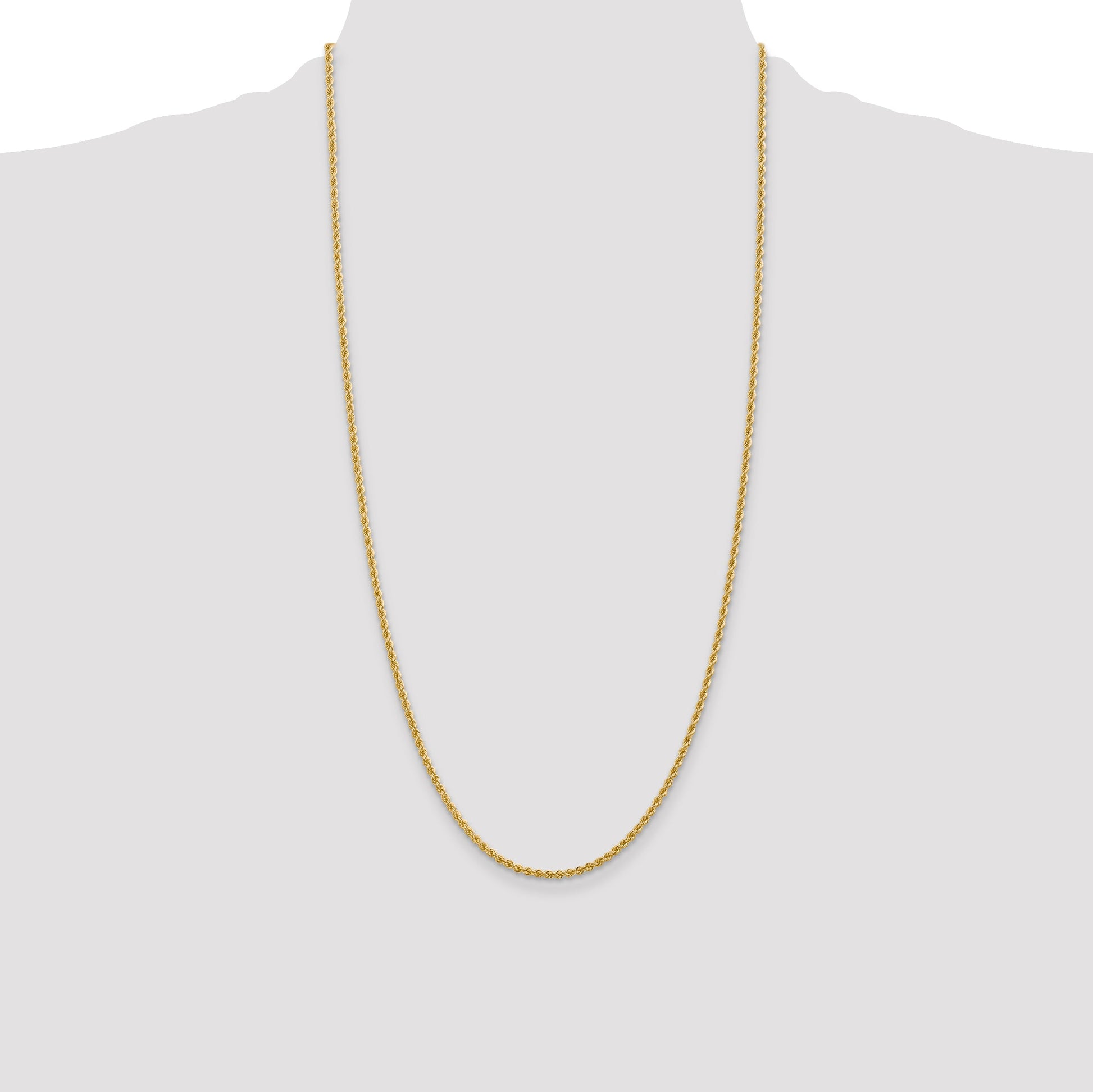 The 14k Yellow Gold 28-inch Rope Chain with Lobster Clasp exudes timeless elegance. Crafted from polished 14K gold, this necklace shines brilliantly. Its 2.25mm rope design offers both strength and style, making it perfect for everyday wear or special occasions. The 28-inch length drapes gracefully, while the lobster clasp ensures a secure fit. Meticulously handmade, this solid gold chain is as durable as it is beautiful. Whether as a gift or a personal indulgence, the 14k Yellow Gold 28-inch Rope Chain with Lobster Clasp will be a cherished addition to any jewelry collection.