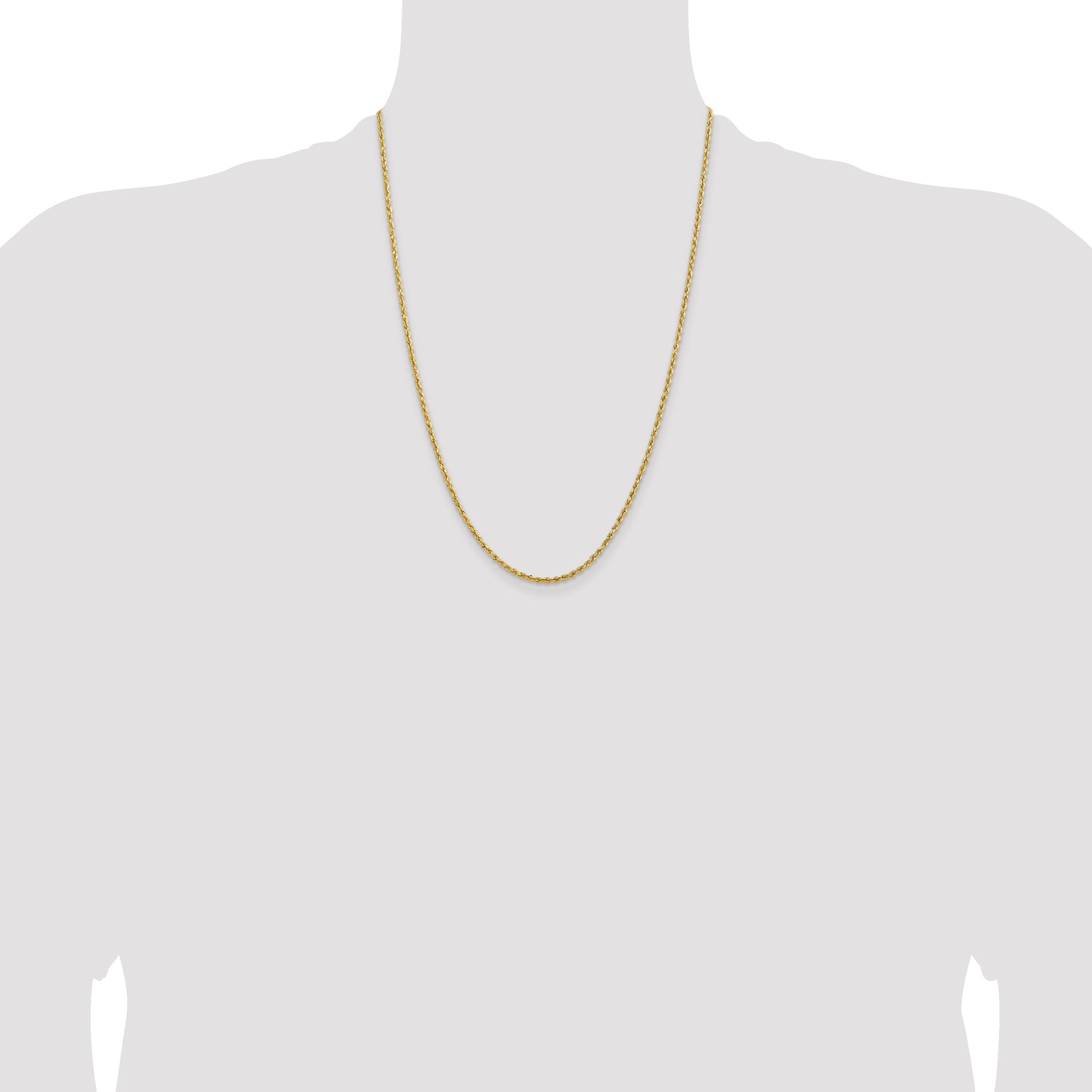 Elevate your style with the 14k Yellow Gold 2mm Lightweight D/C Rope with Lobster Clasp Chain. This 24-inch chain is crafted from pure 14K gold, giving it a classy and elegant look. The diamond-cut texture adds a touch of sparkle, making it perfect for any occasion. The sturdy rope design ensures durability while the lobster clasp provides secure closure. Make a statement without saying a word with the timeless 14k Yellow Gold 2mm Lightweight D/C Rope with Lobster Clasp Chain.