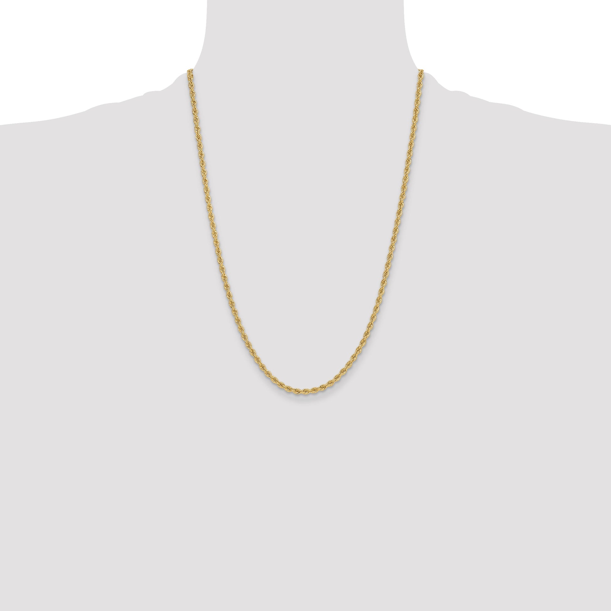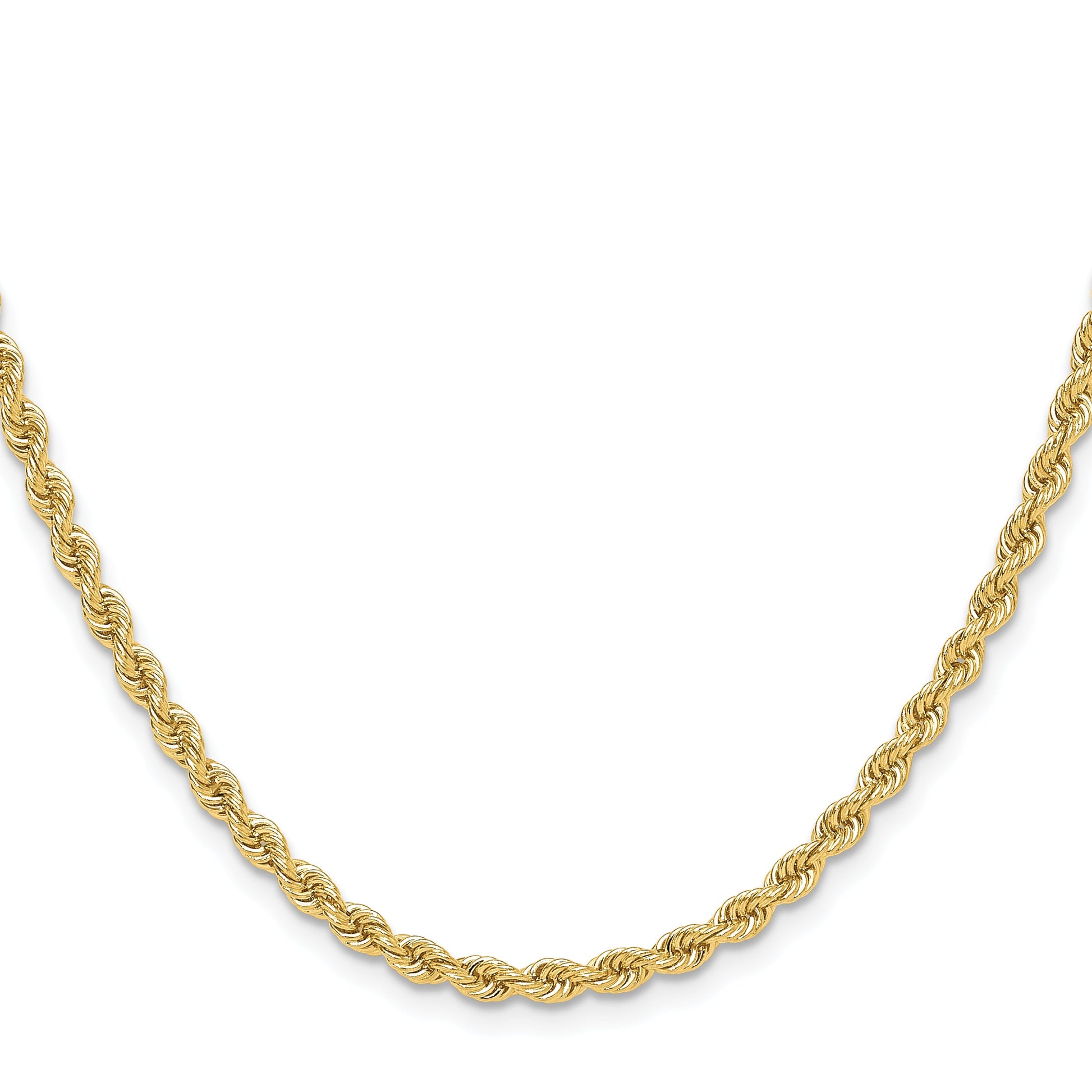 Introducing the 14k Yellow Gold 3.3mm Regular Rope Chain, a blend of elegance and durability. Crafted from 14k gold, this polished chain offers a lustrous shine that catches the eye. With a 24-inch length and a 3.4mm width, it's versatile enough for any occasion. The sturdy rope design ensures lasting wear, while the lobster clasp provides secure closure. Whether for yourself or a cherished gift, the 14k Yellow Gold 3.3mm Regular Rope Chain is a timeless piece that adds a touch of class to any ensemble.