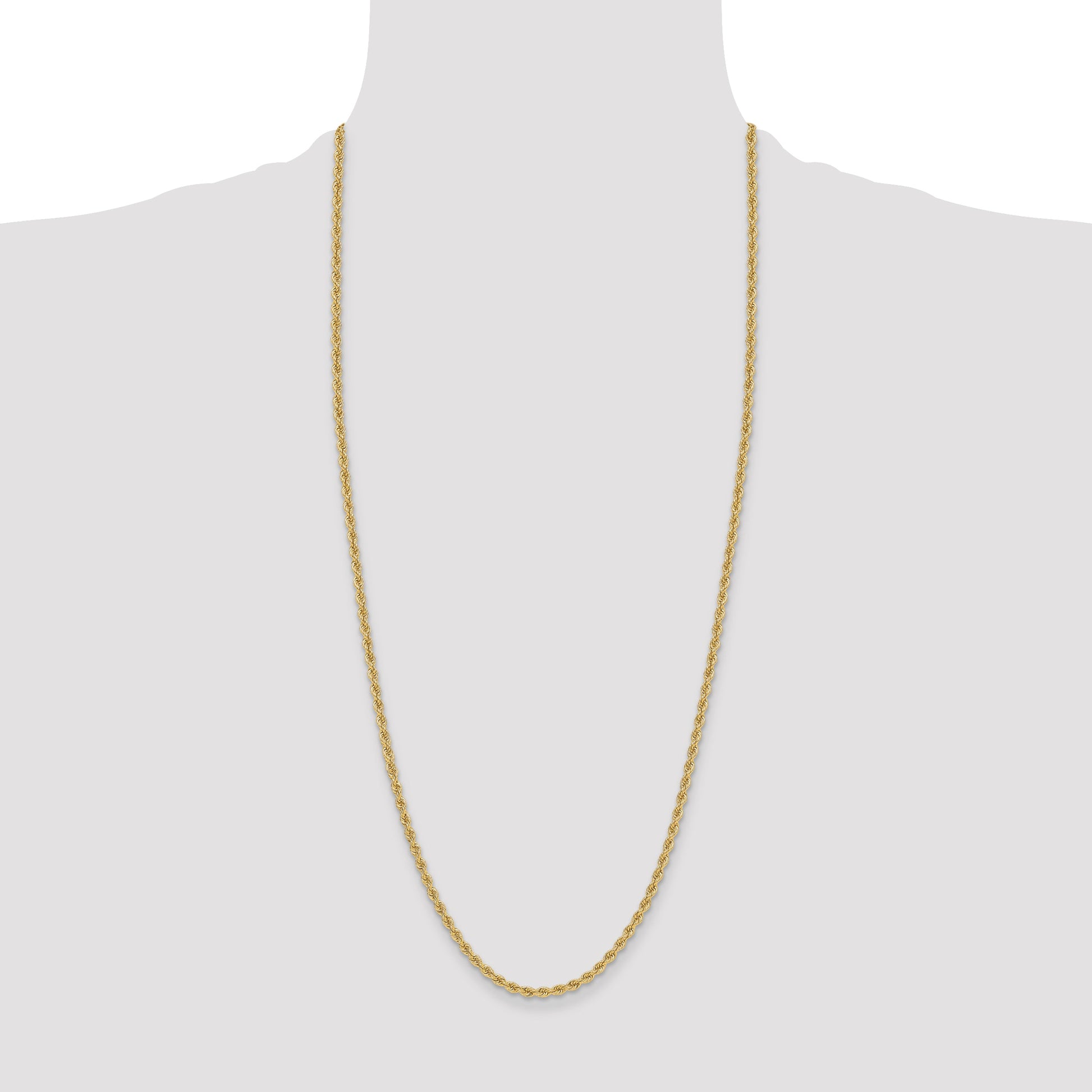 Introducing the exquisite 14k Yellow Gold 3.3mm Regular Rope Chain, a must-have for your jewelry collection. Crafted from high-quality 14k gold, this necklace features a polished finish that shines brilliantly. Measuring 30 inches in length, the rope chain design offers both style and durability. The secure lobster clasp ensures a reliable fit. Its unisex appeal makes it perfect for any occasion, whether dressing up or keeping it casual. Add a touch of elegance to your look with the 14k Yellow Gold 3.3mm Regular Rope Chain.
