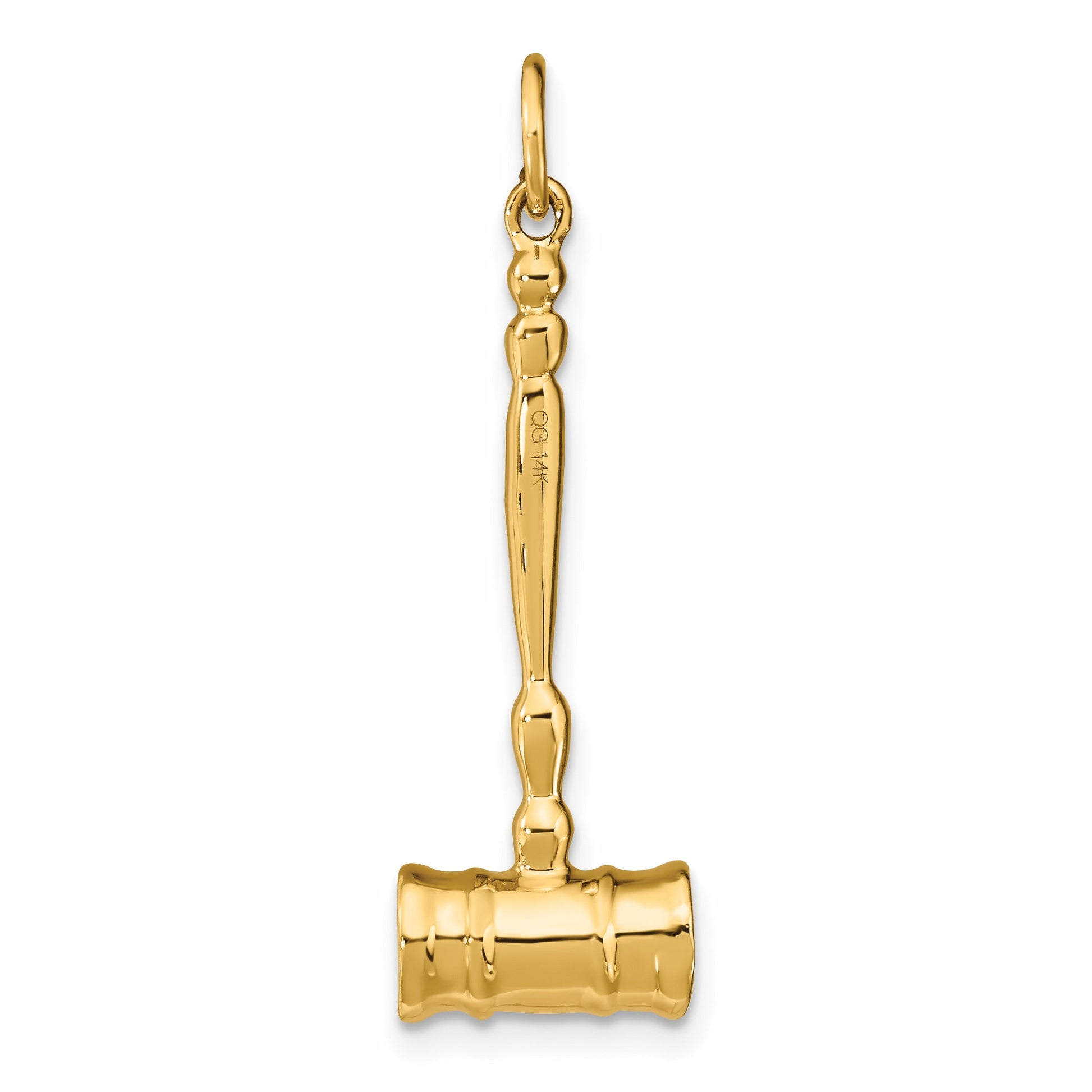 The 14k Yellow Gold 3-D Gavel Charm adds a unique touch to your jewelry collection. Crafted from high-quality 14K gold, this charm features a polished finish that shines brilliantly. Measuring 28 mm in length and 10 mm in width, its three-dimensional design brings a striking element to any outfit. Ideal for men who appreciate themed jewelry, this charm serves as a stylish statement piece. Wear the 14k Yellow Gold 3-D Gavel Charm as a standout accessory or gift it to someone special who values craftsmanship and unique style.