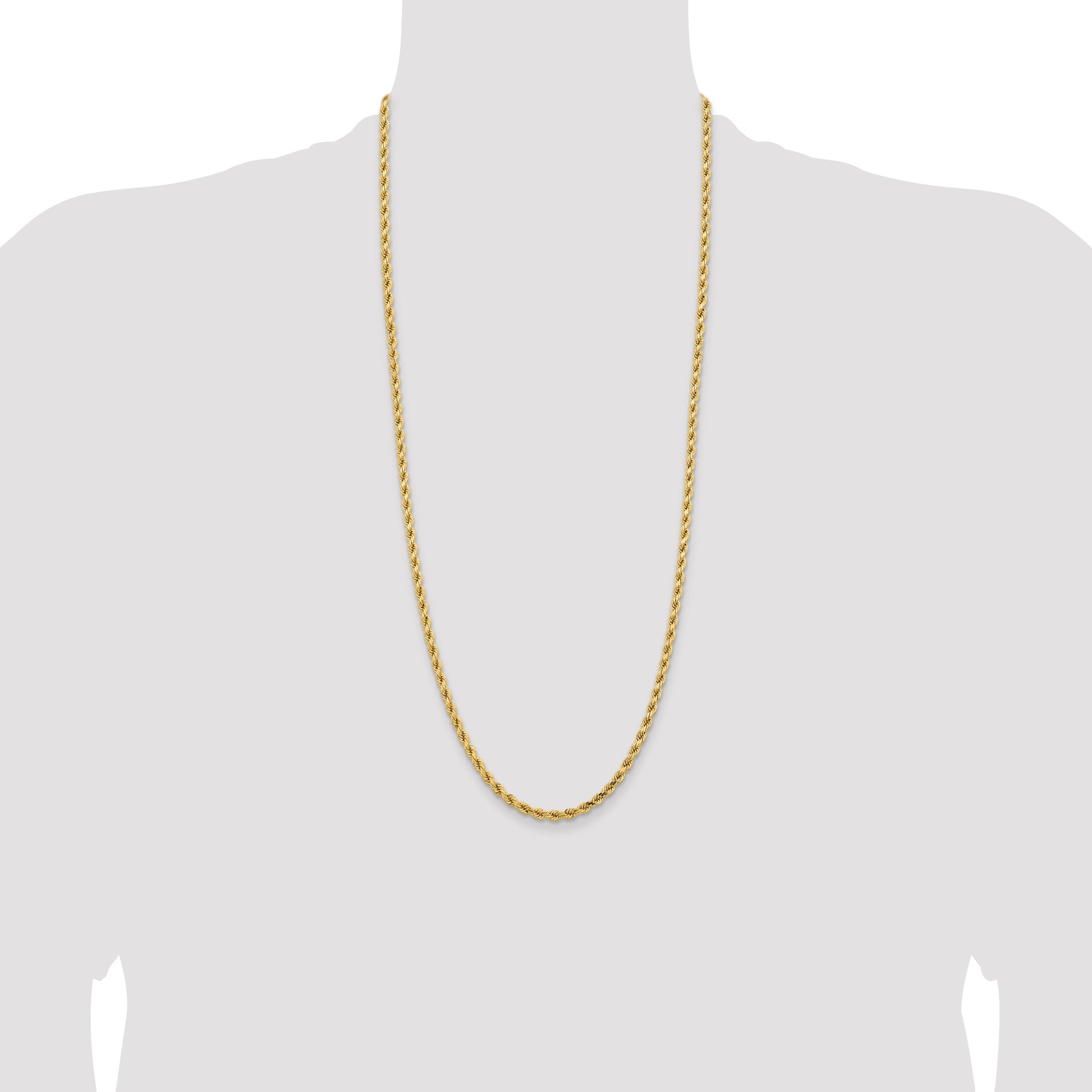 Introducing the 14k Yellow Gold 30-inch Diamond-cut Rope Chain with Lobster Clasp, a blend of elegance and craftsmanship. This polished 14k yellow gold chain dazzles with its diamond-cut texture, creating a stunning play of light. Its robust, 4.25mm rope design offers both durability and timeless style, making it a versatile piece for any wardrobe. Equipped with a secure lobster clasp, this 30-inch chain is perfect for both men and women. Elevate your jewelry collection with the luxurious appeal of the 14k Yellow Gold 30-inch Diamond-cut Rope Chain with Lobster Clasp.