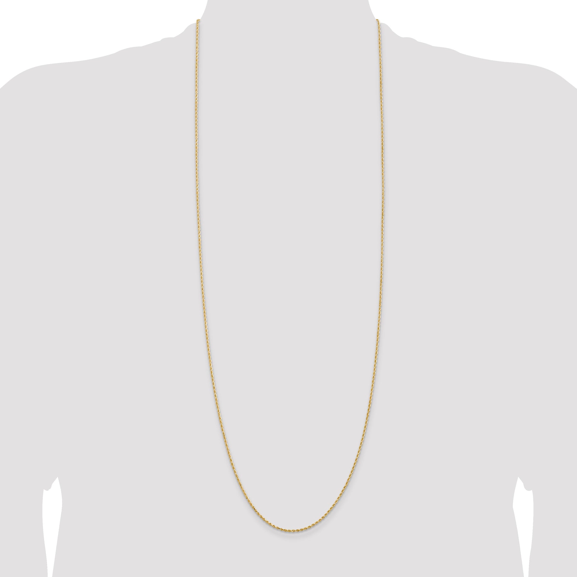 The 14k Yellow Gold 14K 36-inch 1.5mm Diamond-cut Rope with Lobster Clasp Chain stands as an emblem of elegance. Handcrafted with polished 14K gold, it radiates a brilliant finish. The chain stretches a full 36 inches and boasts a 1.5mm width, making it versatile for various styles. Its diamond-cut texture ensures a sparkling appearance, while the lobster clasp offers secure wear. Ideal for women, this solid gold masterpiece brings both beauty and resilience. Elevate your jewelry collection with the 14k Yellow Gold 14K 36-inch 1.5mm Diamond-cut Rope with Lobster Clasp Chain.