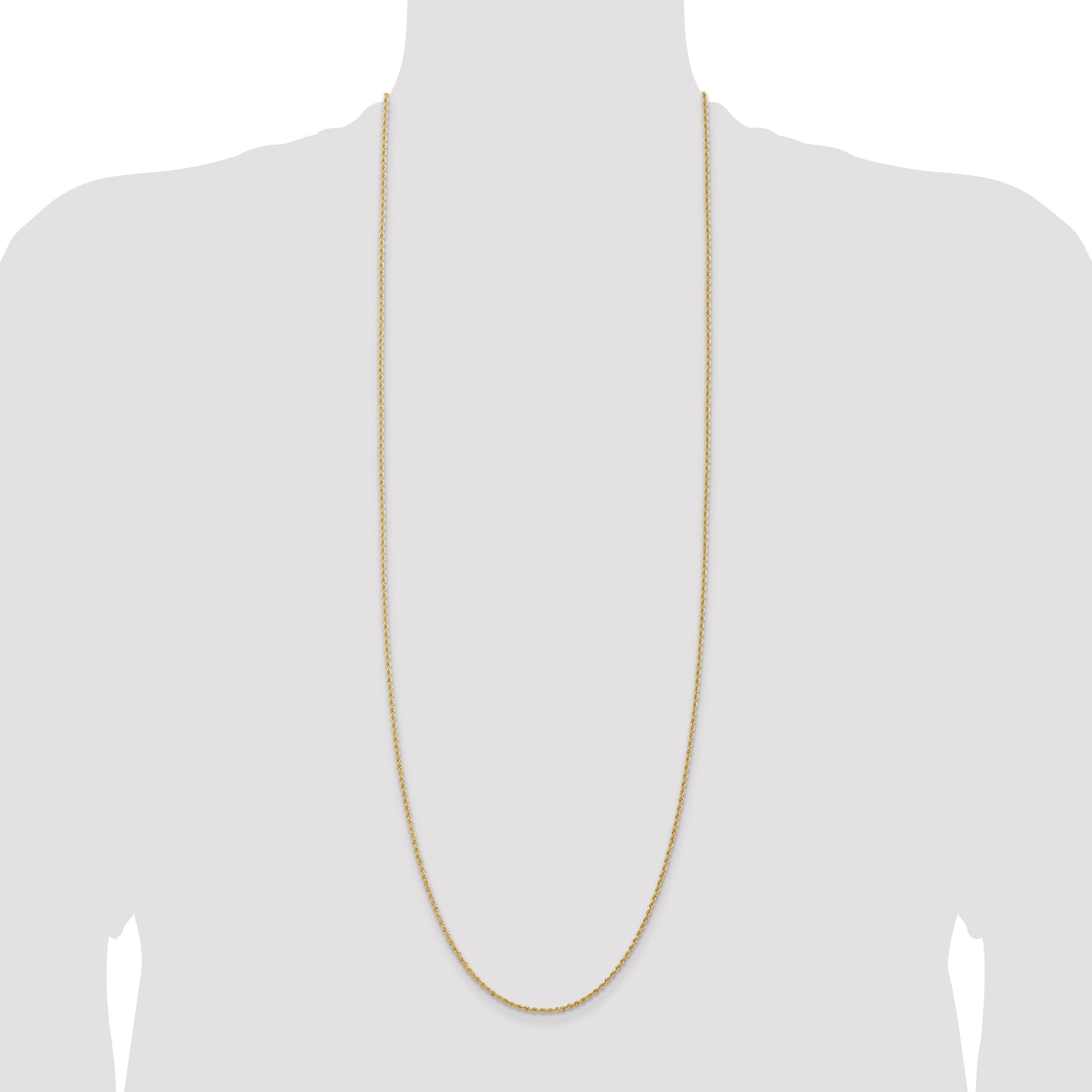 The 14k Yellow Gold 14K 36 inch 1.5mm Regular Rope with Lobster Clasp Chain is a stunning piece of fine jewelry. Handcrafted with polished 14k yellow gold, this 36-inch rope chain stands out with its elegant 1.5mm width. The solid construction ensures lasting quality, while the lobster clasp offers a secure closure. This necklace adds a touch of sophistication to any outfit, making it a perfect accessory for any occasion. Elevate your style with the classic and timeless 14k Yellow Gold 14K 36 inch 1.5mm Regular Rope with Lobster Clasp Chain.