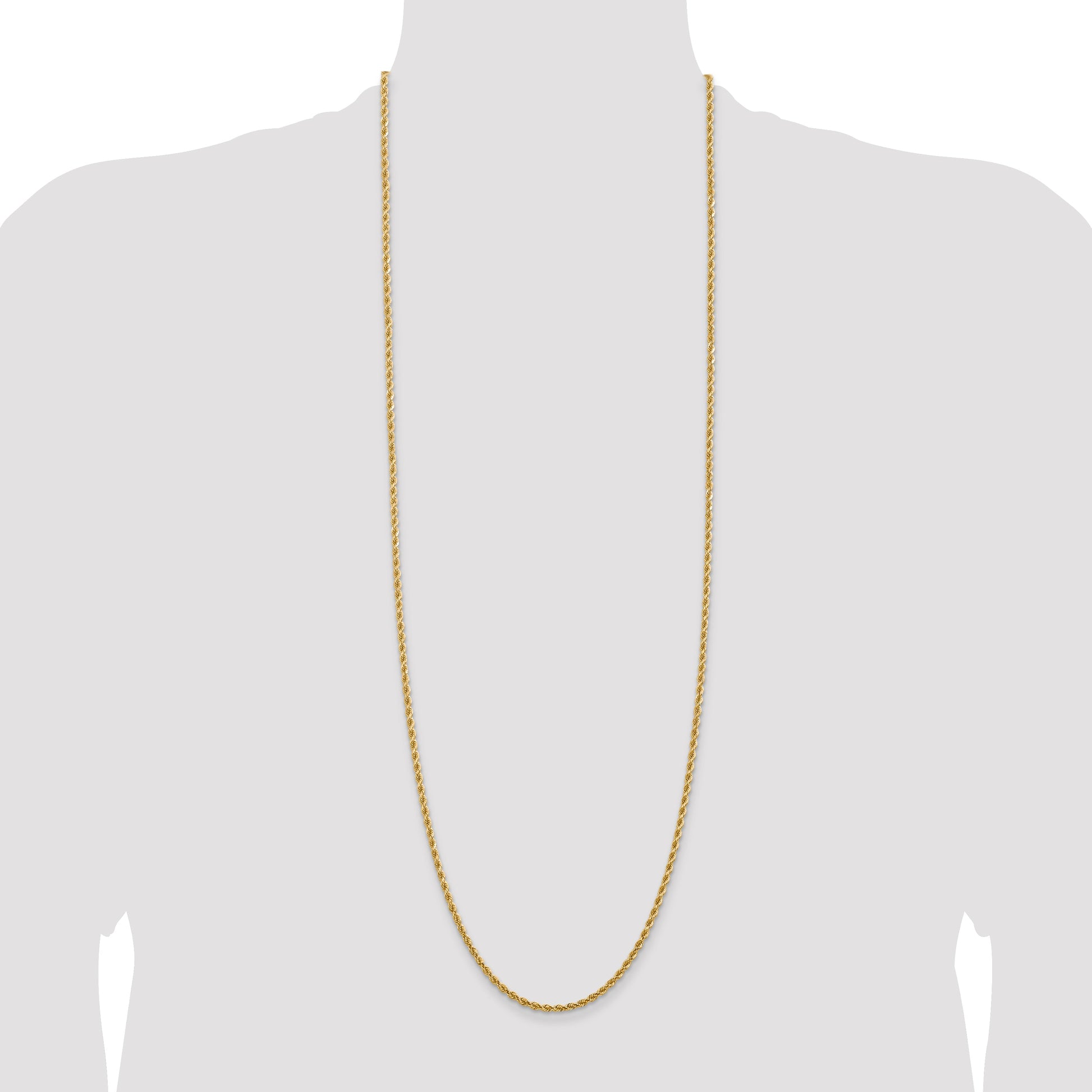 Discover elegance with our 14k Yellow Gold 36-inch Diamond-Cut Rope Chain. Crafted with pure 14K gold, this polished piece gleams with every movement. Measuring 36 inches in length and 2.75 mm in width, the diamond-cut texture adds a touch of sparkle. The sturdy lobster clasp ensures it stays secure throughout the day. Handmade with precision, this solid gold necklace is a timeless addition to any woman's jewelry collection. Make a statement with the 14k Yellow Gold 36-inch Diamond-Cut Rope Chain, a blend of durability and style.