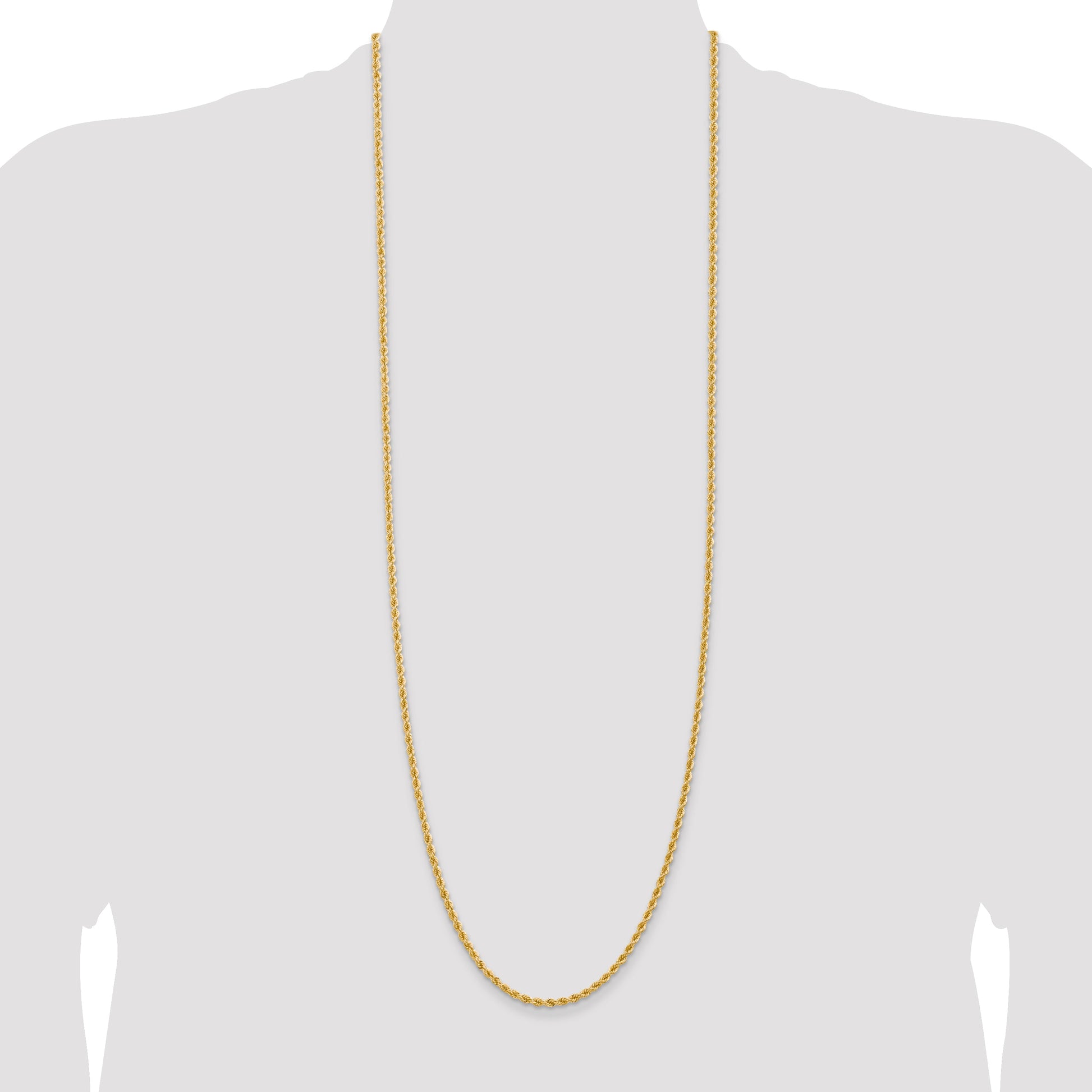 Introducing the 14k Yellow Gold 36 inch Regular Rope Chain, a piece that exudes timeless elegance. Crafted from polished 14K gold, this 36-inch necklace features a 2.75mm wide rope chain that catches the light beautifully. The solid, hand-made design ensures longevity, while the lobster clasp offers secure and easy wear. Perfect for layering or wearing solo, this chain showcases fine craftsmanship. Elevate any outfit with the sophistication of this 14k Yellow Gold 36 inch Regular Rope Chain. It's a must-have addition to any jewelry collection.