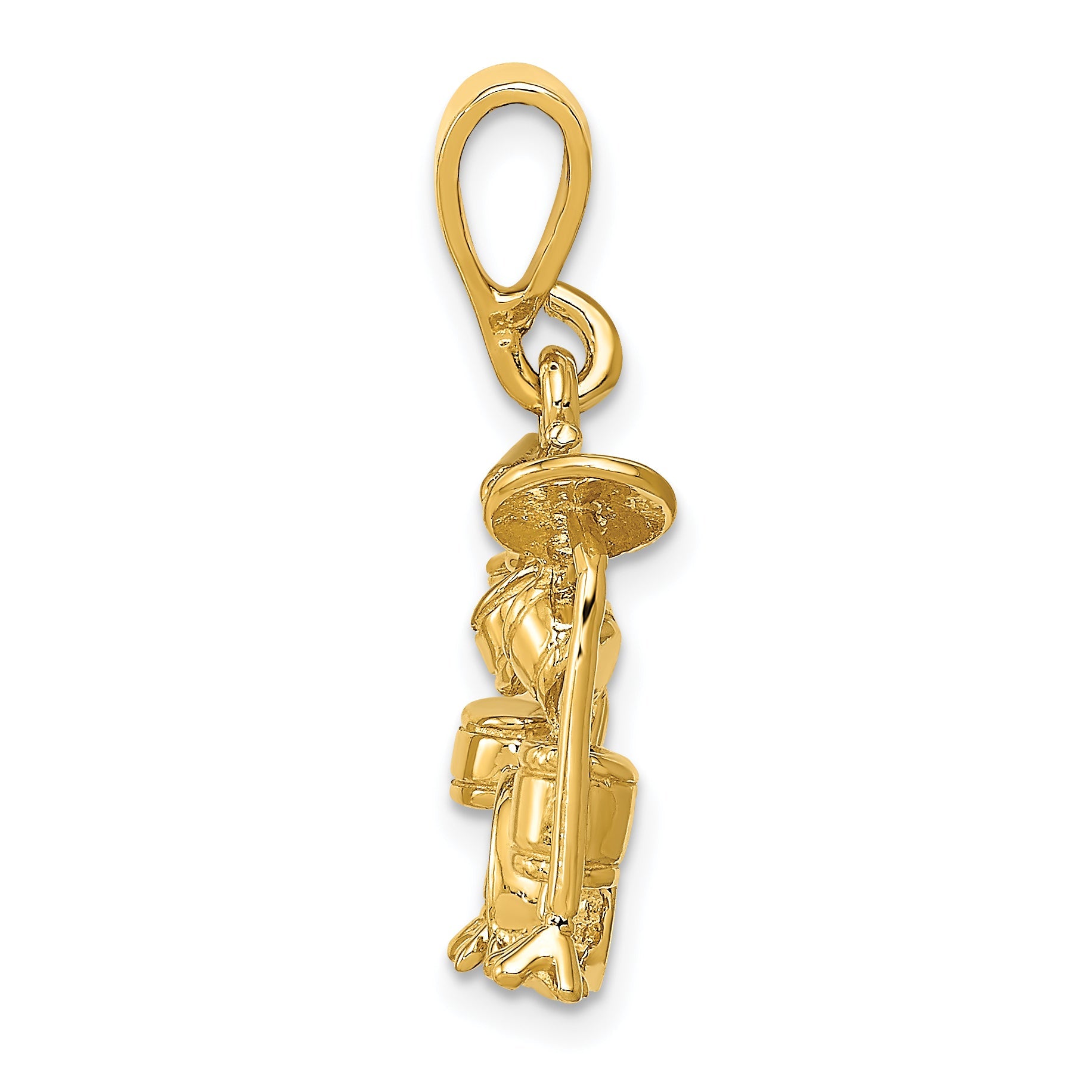 The 14k Yellow Gold 3D Drum Set Charm adds a touch of music to your jewelry collection. Crafted from solid 14K gold, this polished charm features a detailed 3D design that captures the essence of a drum set. Measuring 26 mm in length and 15 mm in width, it is the perfect size to show off your passion for music. The charm’s textured finish adds depth, while the sturdy bail of 8.5 mm ensures it hangs beautifully. Elevate your style with the 14k Yellow Gold 3D Drum Set Charm; it's a must-have for any music lover.