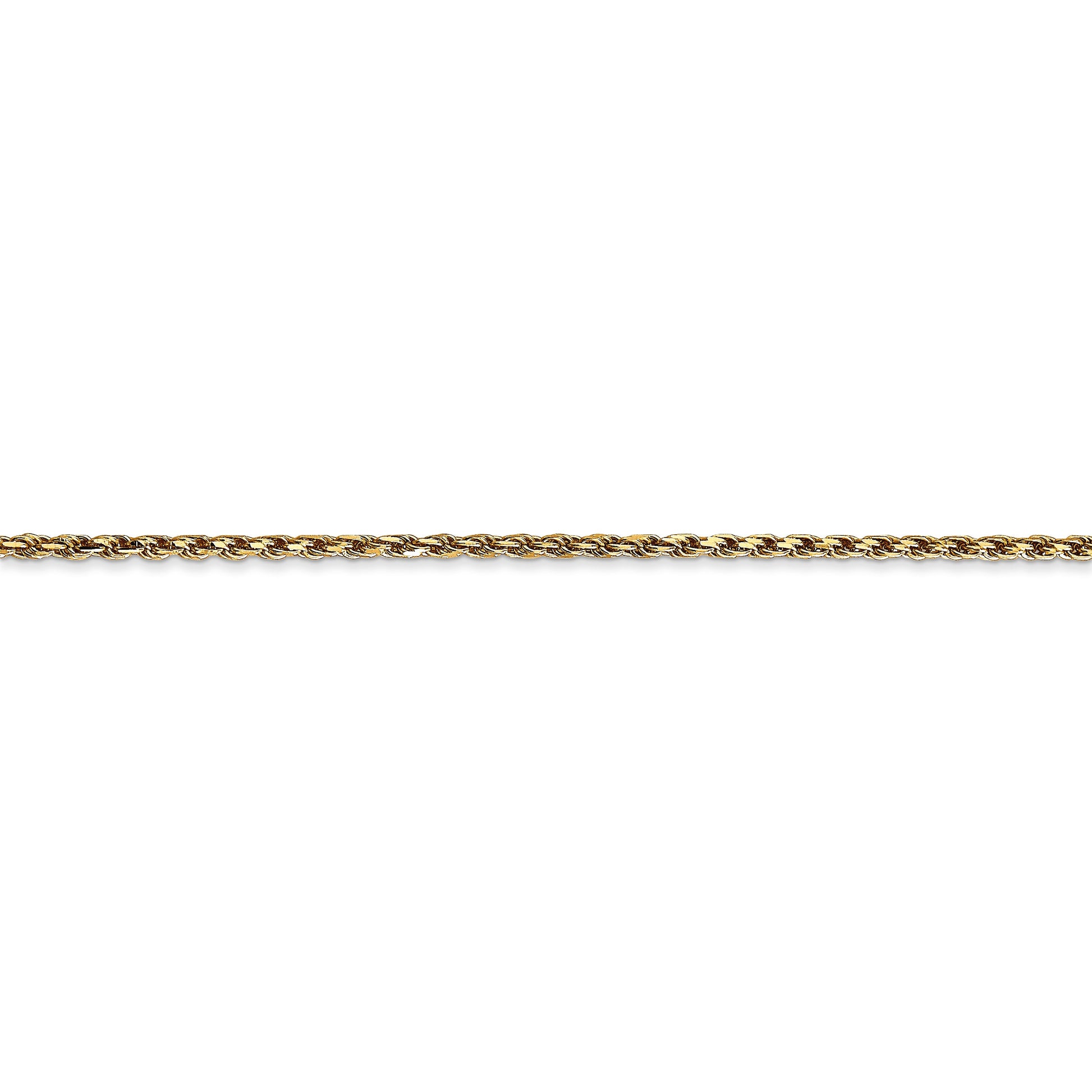 Discover elegance with our 14k Yellow Gold 8-inch Diamond-cut Rope Chain Bracelet. This finely crafted piece boasts a polished finish, a 1.75mm width, and a secure lobster clasp. Handmade with precision, its rope design sparkles brilliantly, adding a touch of luxury to any outfit. Ideal for women seeking sophisticated accents, this bracelet is a true masterpiece in fine jewelry. Elevate your style with the timeless charm of the 14k Yellow Gold 8-inch Diamond-cut Rope Chain Bracelet.