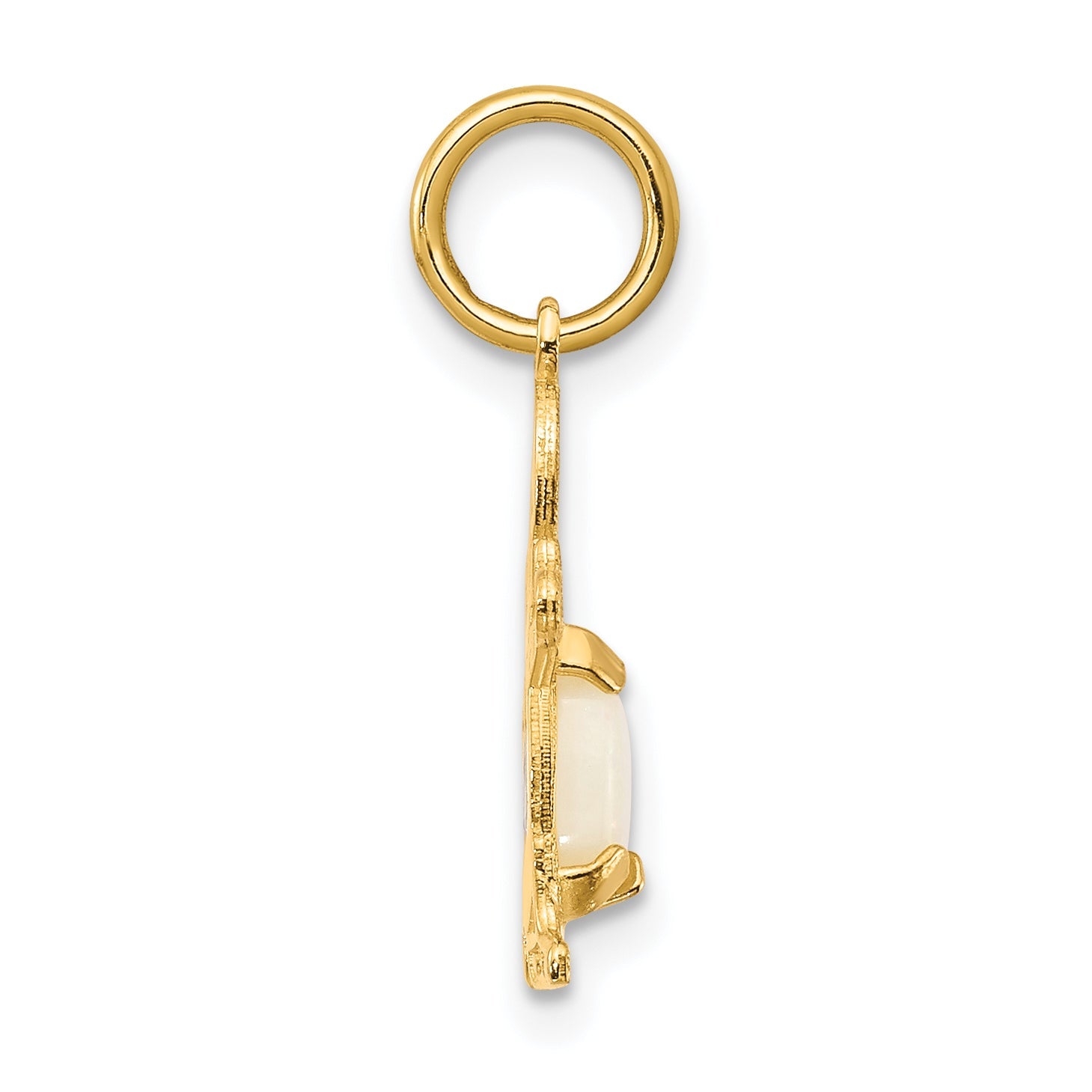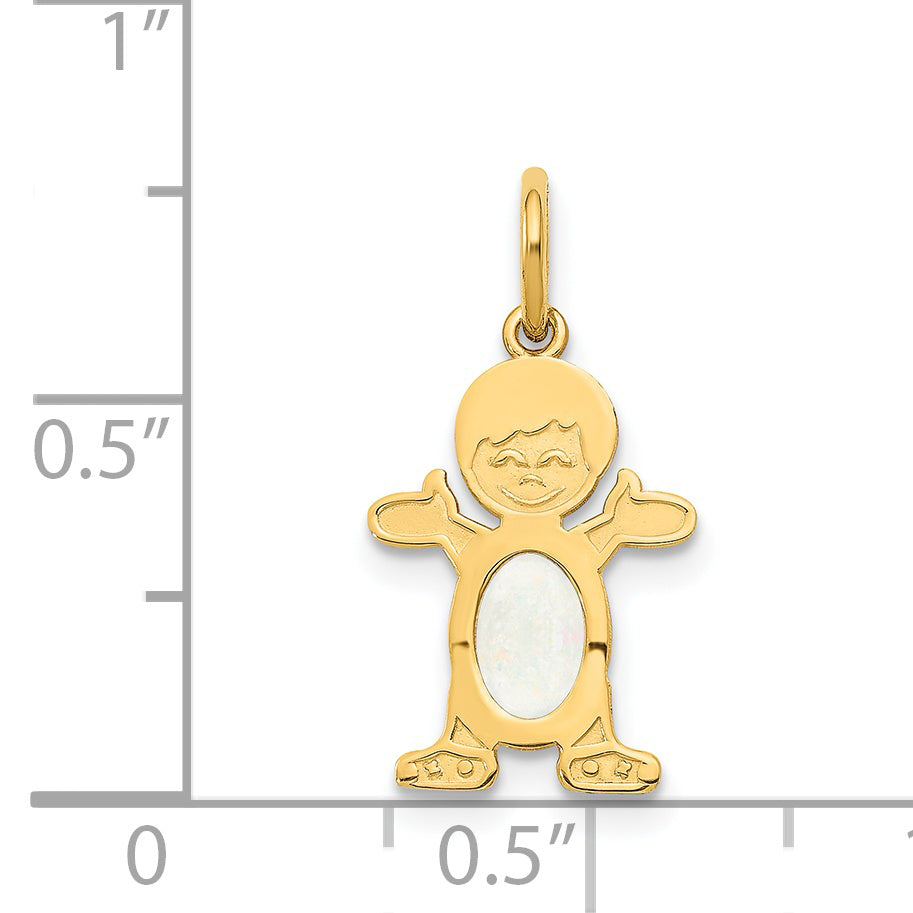 Introducing the stunning 14K Yellow Gold 14K Boy 6x4 Oval Genuine Opal Pendant. This beautiful piece showcases a genuine opal, featuring one of nature's rare phenomena. The opal shines in a classic oval shape, measuring 6x4 mm and weighing 0.28 ct. Its untreated, cabochon cut enhances its vibrant allure. Crafted from high-quality 14K yellow gold, this pendant is perfect for celebrating the October birthstone. The charm measures 14 mm in length and 10 mm in width, making it a splendid addition to any jewelry collection. Embrace elegance with the 14K Yellow Gold 14K Boy 6x4 Oval Genuine Opal Pendant.