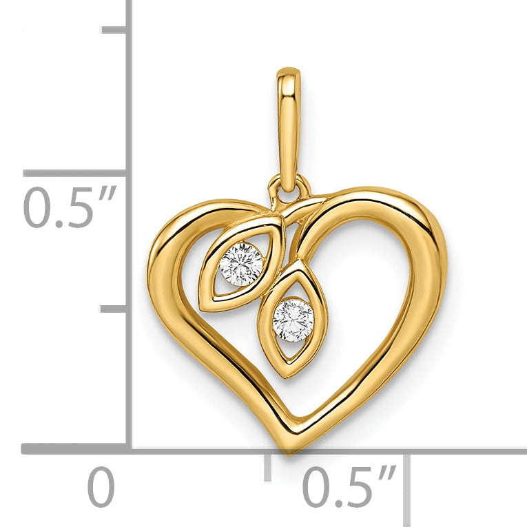 Introducing the absolutely stunning 14k Yellow Gold CZ Heart Pendant, a treasure every woman deserves. This high-quality piece is meticulously crafted with pure 14k yellow gold, ensuring the finest quality. Embodying love and elegance, the pendant features two white cubic zirconia stones exuding a radiant sparkle. Exciting details such as the polished finish and open back profile enhance this charm's overall appeal, while its slender 1.12mm bail length ensures a comfortable fit. With a solid design, this pendant promises durability, ensuring that it always holds a special place in your jewelry box. So, indulge in the sophistication of the 14k Yellow Gold CZ Heart Pendant, a piece truly worth flaunting.