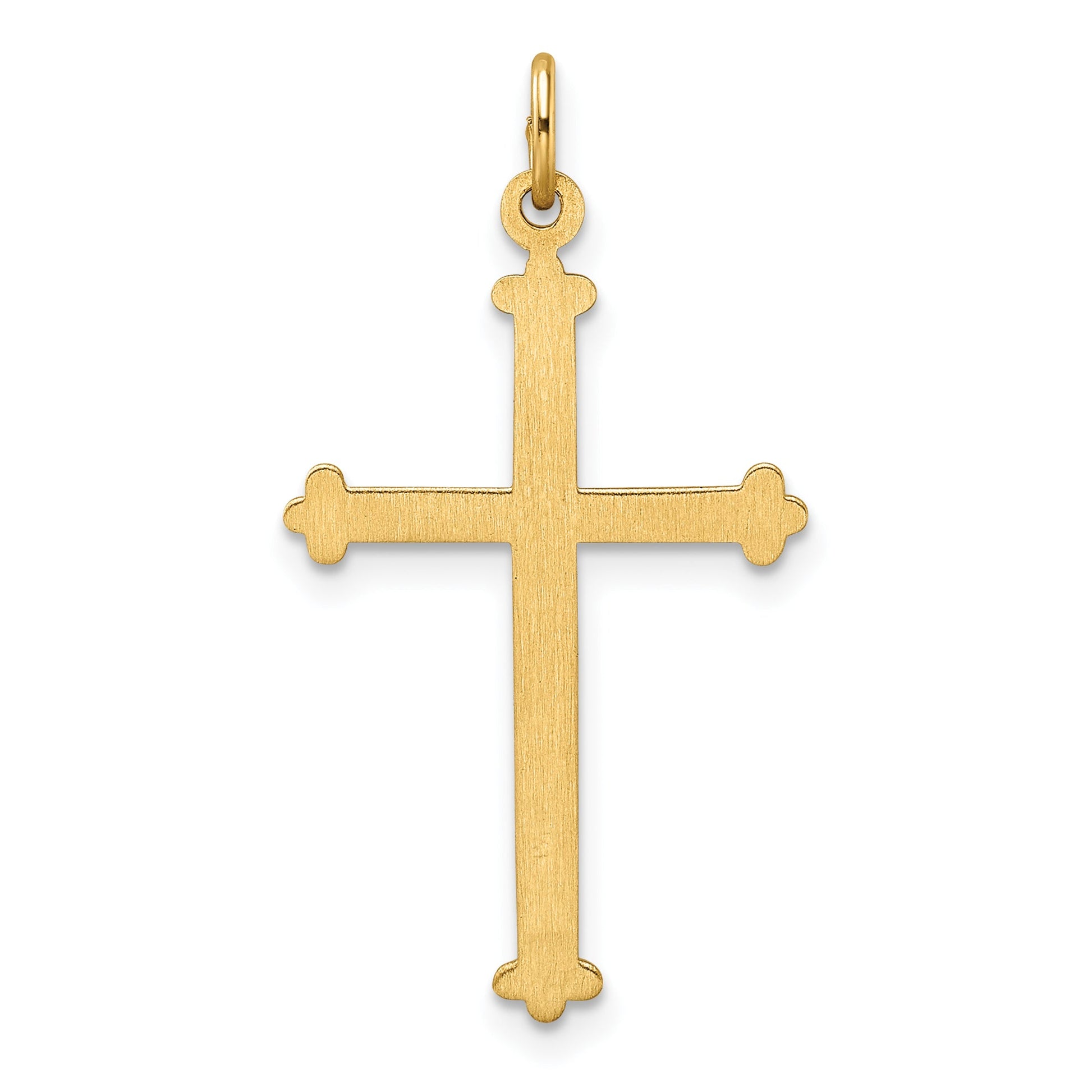 Discover elegance with the 14k Yellow Gold Polished and Textured Solid Diamond Shape Cross Pendant. This stunning piece features a solid gold design and a shiny finish, making it a must-have for both men and women. Measuring 30 mm in length, this pendant showcases a unique diamond shape with textured details that catch the eye. The 4 mm bail ensures easy attachment to your favorite chain. Whether worn daily or on special occasions, the 14k Yellow Gold Polished and Textured Solid Diamond Shape Cross Pendant makes a powerful statement and adds a touch of grace to any outfit.