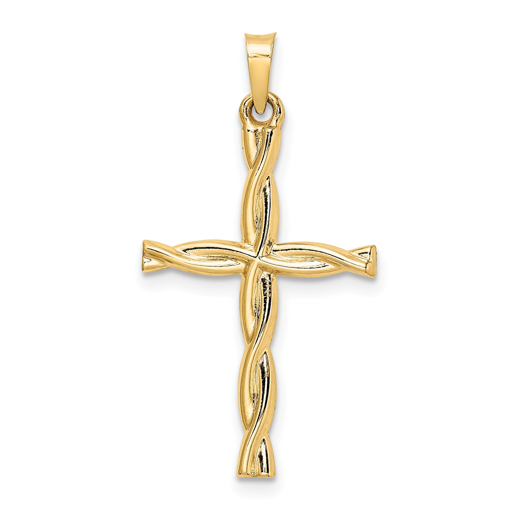 Discover the elegance of the 14k Yellow Gold Polished Hollow Twisted Cross Pendant. This stunning piece features a unique twisted design that catches the light beautifully. Made from high-quality 14k yellow gold, it boasts a polished finish for a sophisticated look. Measuring 31 mm in length, the pendant's hollow charm adds a lightweight feel without sacrificing style. With a unisex appeal, this pendant is perfect for anyone looking to elevate their jewelry collection. Slip it on for a special occasion or casual day out—the 14k Yellow Gold Polished Hollow Twisted Cross Pendant truly shines in any setting.