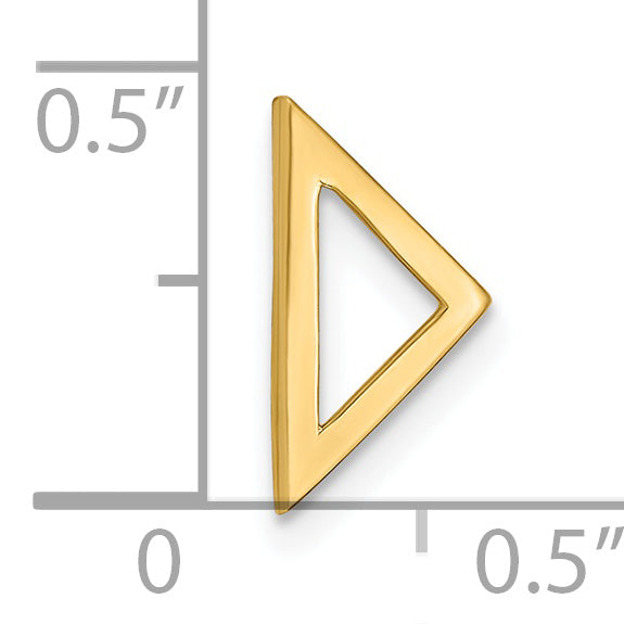 Introducing the exquisite 14k Yellow Gold Polished Triangle Chain Slide. This fine jewelry piece, crafted with 14K purity, exudes a polished finish that elevates its elegant allure. As part of its robust features, it is complete with all stones, adding sparkles to its beauty. Although weight isn't its defining factor, it certainly adds to its charm. The jewelry is not recommended for engraving, preserving the pristine surface. This piece is sold individually, making each one special. Despite its open-back profile, this piece won't fit Omega, but it complements other accessories perfectly. Immerse yourself in the ultimate luxury with 14k Yellow Gold Polished Triangle Chain Slide.