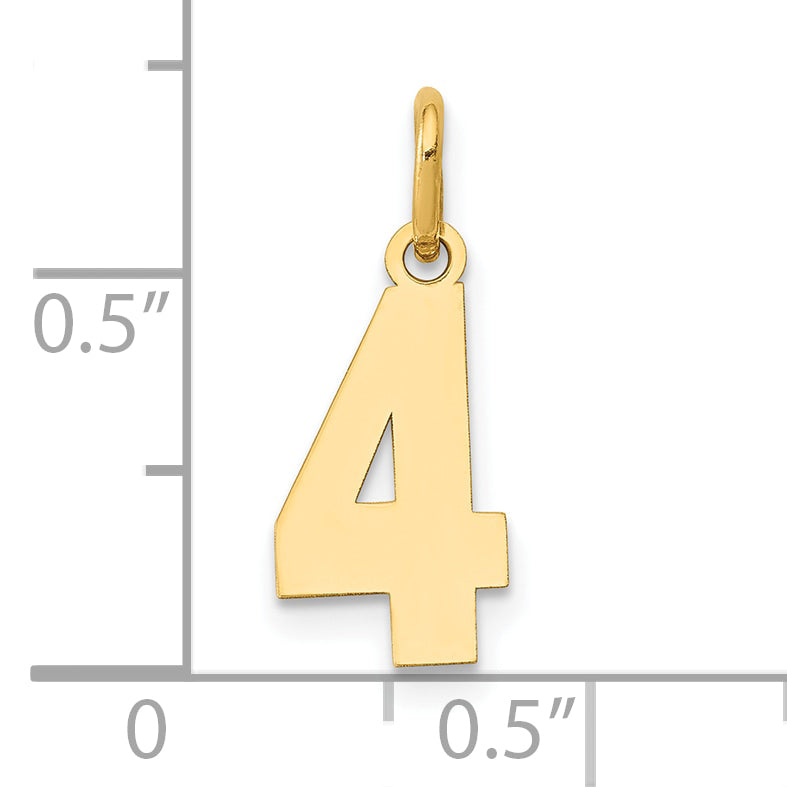 Introducing our 14k Yellow Gold Small Polished Number 4 Charm - a must-have in fine jewelry! Crafted precisely with 14K purity gold, boasting a polished finish which shines in any light. Designed with a sleek 14.34-mm length and 7.11-mm width, it's the perfect piece to make your charm collection unique. Every detail of this charm shouts elegance, down to its laser-cut manufacturing process ensuring meticulous detail. Stand out with this number 4 charm, sold as a single unit, this piece is excellent for those seeking a small, yet impactful style upgrade. Turn heads with this striking 14k Yellow Gold Small Polished Number 4 Charm!
