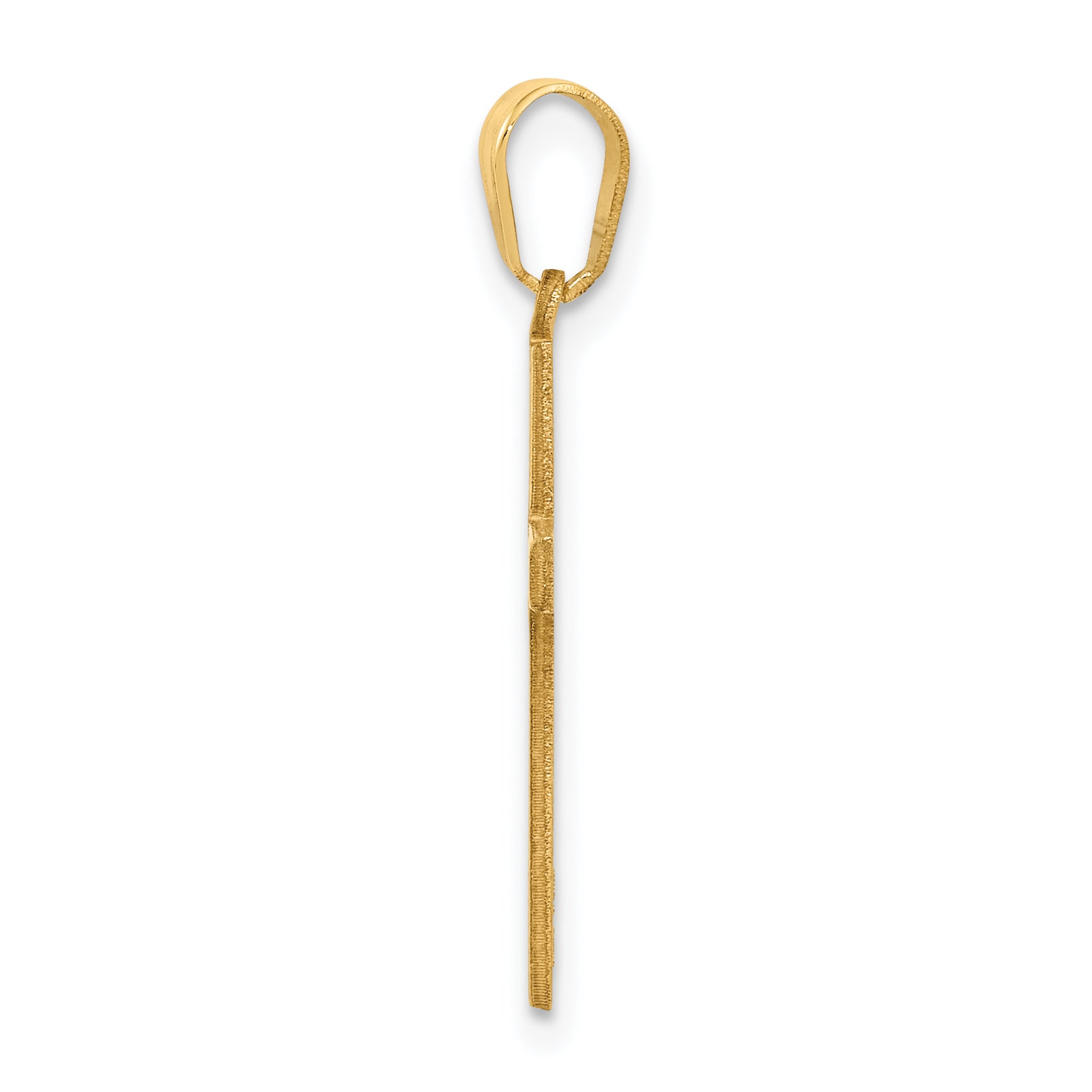 Introducing the stunning 14k Yellow Gold Solid Laser Etched Cross Pendant. This piece showcases a polished finish that catches the light beautifully. Measuring 25 mm in length, its charm is 20.5 mm tall and 12 mm wide, making it a striking accessory. The flat back sits comfortably against your skin, while the bail length of 6.2 mm ensures easy attachment to your favorite chain. Crafted with high-quality 14k gold, this pendant makes a meaningful gift for any occasion. Elevate your jewelry collection with the exquisite 14k Yellow Gold Solid Laser Etched Cross Pendant.
