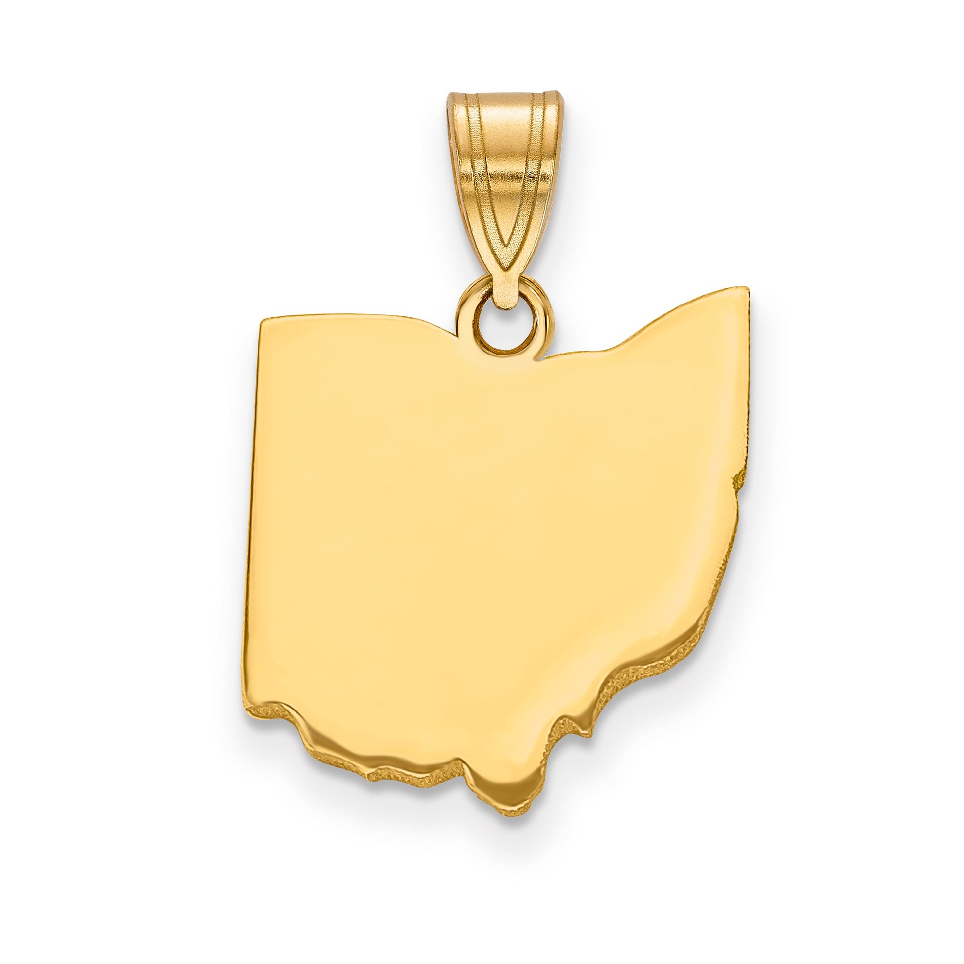 Introducing the stunning 14k Yellow Gold 14KY Ohio State Pendant, a perfect blend of style and pride. Crafted from high-quality 14K yellow gold, this pendant features a polished finish that shines brightly. Its compact size, measuring 17.4mm in length and 14.3mm in width, makes it an ideal addition to any jewelry collection. The personalized charm adds a unique touch, reflecting your love for Ohio. With a bail length of 6.4mm, it's easy to wear on your favorite chain. Show off your Ohio spirit with the 14k Yellow Gold 14KY Ohio State Pendant.