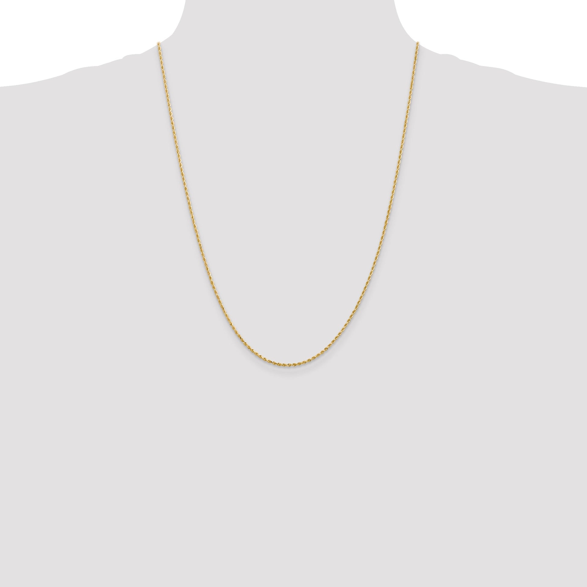 The 14K Yellow Gold 14K 1.5mm Diamond-Cut Rope Chain is the perfect jewelry piece to add shine to any look. Crafted from solid 14K gold, this 24-inch chain offers durability and style. Its diamond-cut texture creates a shimmering effect that grabs the eye. The lobster clasp makes it easy to wear and secure. With a slim 1.5mm width, this necklace blends elegance with everyday wear. Whether you wear it alone or layered, the 14K Yellow Gold 14K 1.5mm Diamond-Cut Rope Chain is a must-have for jewelry lovers. It comes with a lifetime guarantee for lasting beauty.