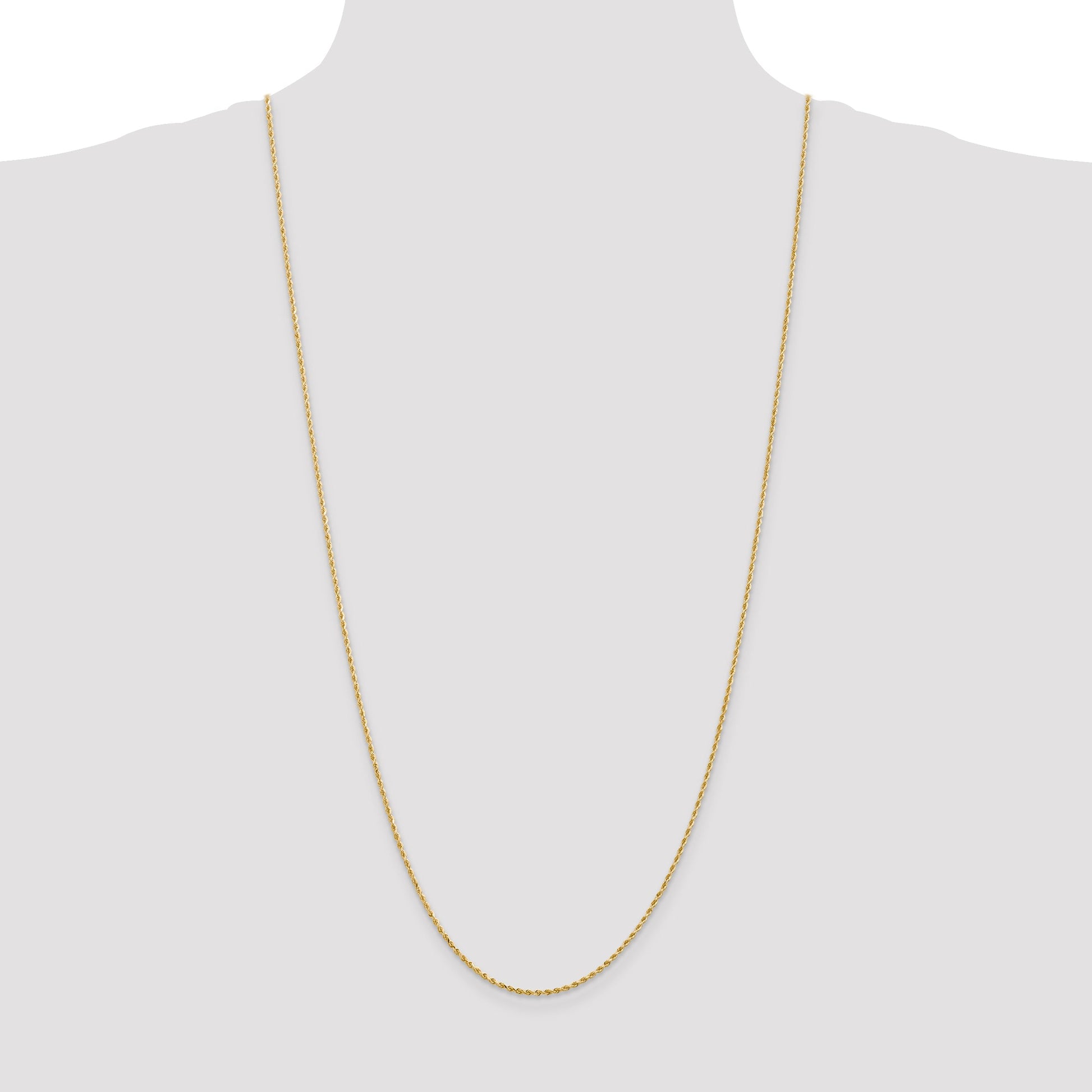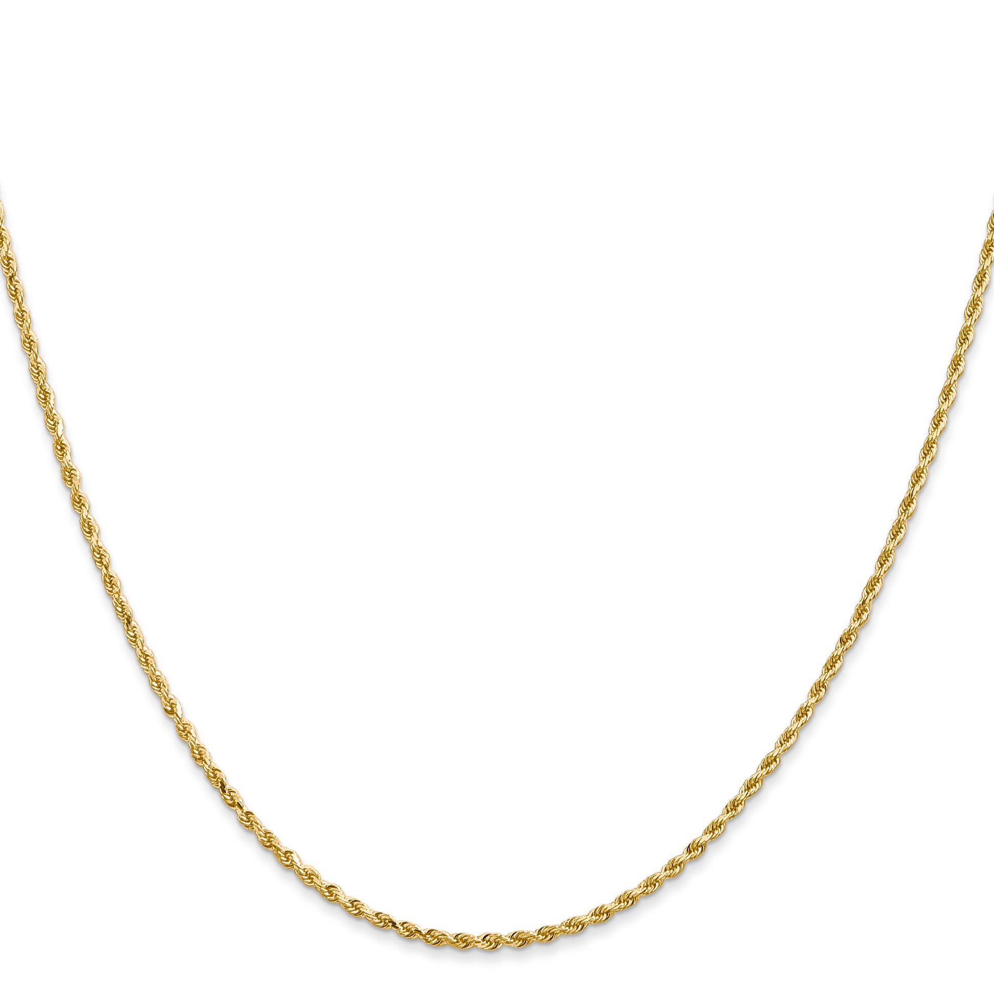 The 14K Yellow Gold 14K 1.5mm Diamond-Cut Rope Chain is a sleek piece that adds style to any look. Crafted from solid 14K gold, this necklace measures 30 inches long and features a diamond-cut finish that catches the light perfectly. Its sturdy lobster clasp ensures secure wear, while the lightweight 1.5mm width makes it comfortable for daily use. Built with quality in mind, this rope chain is made through reliable extrusion and wire-forming processes. Whether you wear it casually or dress it up, the 14K Yellow Gold 14K 1.5mm Diamond-Cut Rope Chain is a versatile choice you can count on.