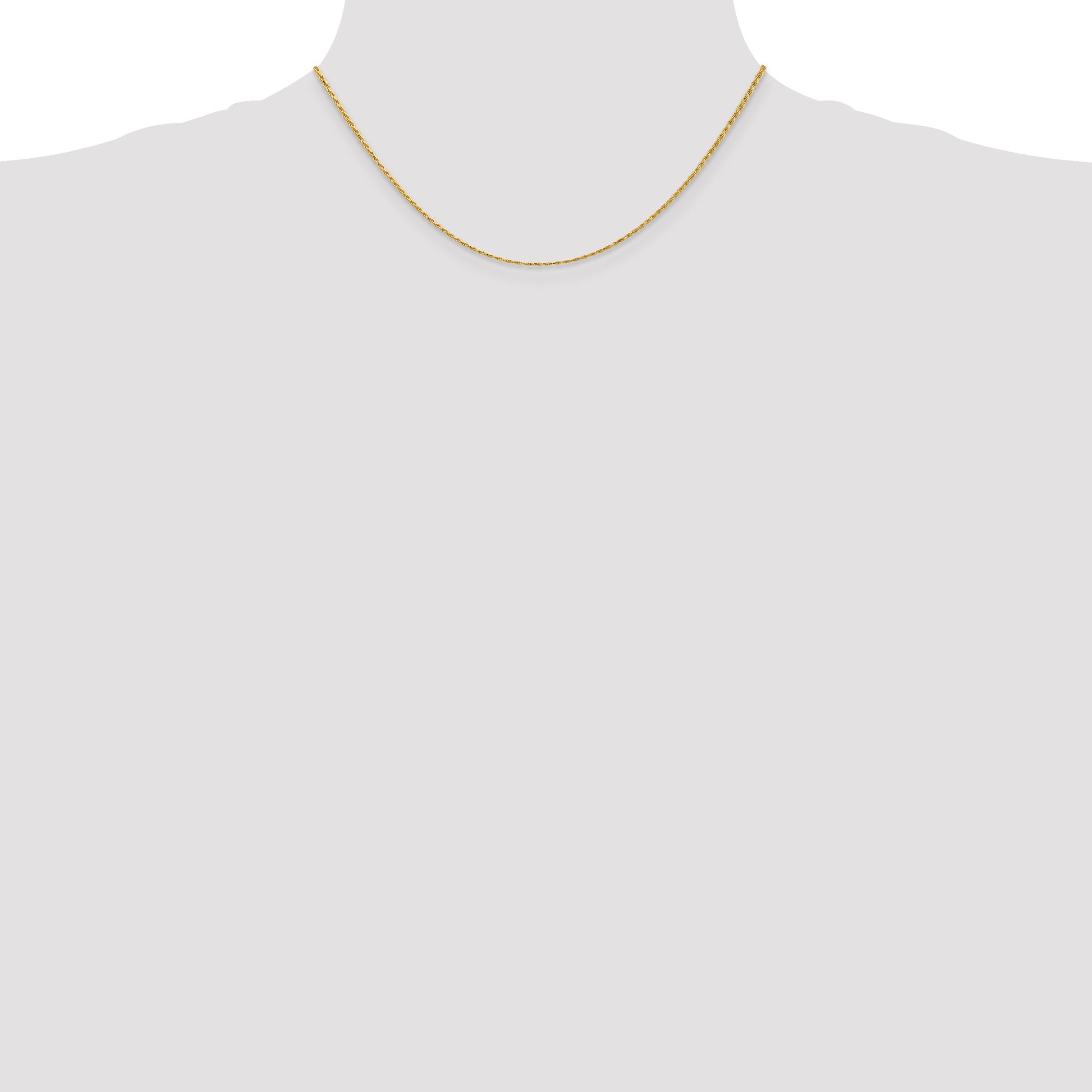 The 14K Yellow Gold 14K 16 Inch 1.3mm Diamond-Cut Solid Machine Made Rope With Lobster Clasp Chain is a stunning addition to any jewelry collection. Crafted from high-quality 14K gold, this chain features a bright polish finish that catches the eye. Its 16-inch length fits comfortably around the neck, making it perfect for everyday wear or adding a touch of elegance to special outfits. The diamond-cut design adds a subtle sparkle, while the solid construction ensures lasting durability. Complete with a secure lobster clasp, the 14K Yellow Gold 14K 16 Inch 1.3mm Diamond-Cut Solid Machine Made Rope With Lobster Clasp Chain offers both style and strength for women who love a classic look.