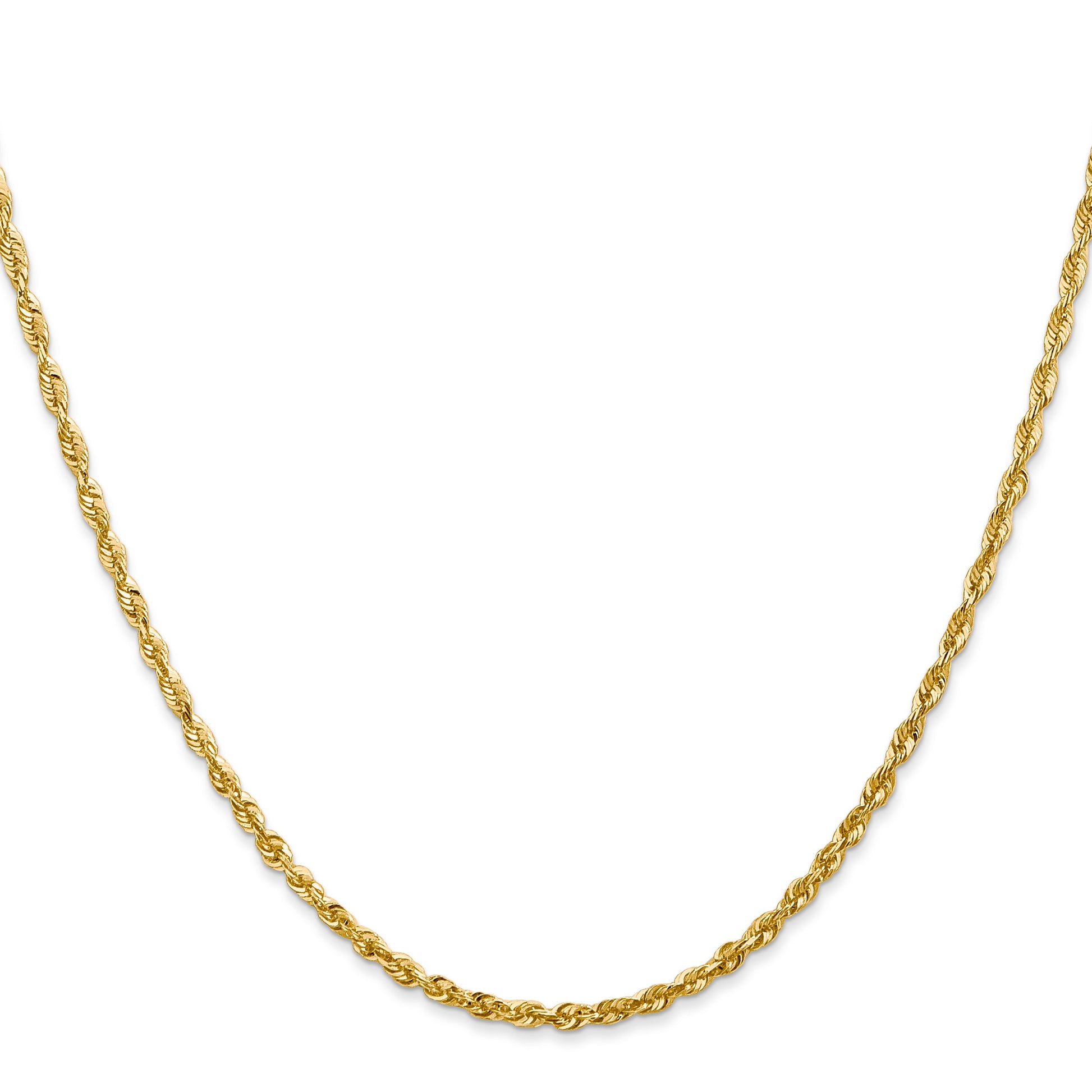 Introducing the 14K Yellow Gold 16 Inch 2.25mm Extra Light Diamond-Cut Rope with Lobster Clasp Chain, a true piece of elegance. Crafted from high-purity 14K gold, this polished necklace exudes luxury for any occasion. The chain is 16 inches long and features a 2.25mm width, perfect for a subtle, yet chic look. Its diamond-cut texture adds a dazzling sparkle that catches the light with every movement. Plus, the secure lobster clasp ensures it stays in place all day. The 14K Yellow Gold Diamond-Cut Rope Chain is the ultimate blend of beauty and durability.