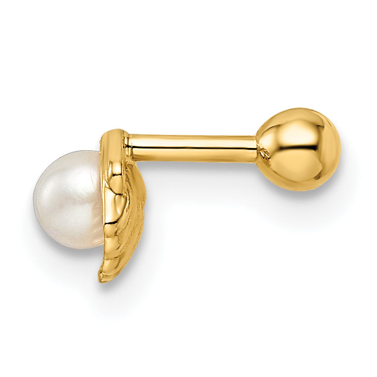 Discover the allure of the 14K Yellow Gold 18 Gauge Scallop Shell with Freshwater Cultured Pearl Labret Stud. Crafted from polished 14K gold, this stunning piece features a delicate scallop shell design adorned with a lustrous freshwater pearl. Measuring 11.4 mm in length, it offers a perfect blend of elegance and durability for any occasion. Ideal for women, this solid casted labret stud ensures a secure and comfortable fit. Elevate your jewelry collection with this exquisite 14K Yellow Gold 18 Gauge Scallop Shell with Freshwater Cultured Pearl Labret Stud.