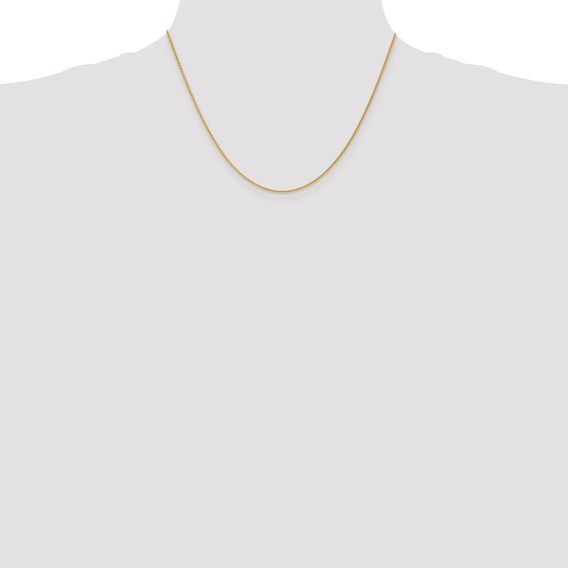 The 14K Yellow Gold 18 Inch 1.2mm Parisian Wheat Chain glistens with polished elegance. Crafted from 14-karat gold, this chain catches the light with its luxurious yellow hue. At 18 inches, it sits gracefully around the neck, offering the perfect length for any neckline. The 1.2mm width provides a delicate yet durable presence, making it a versatile piece for both everyday wear and special occasions. Its wheat, or Spiga, design ensures flexibility and strength, while the secure lobster clasp keeps it safely in place. The 14K Yellow Gold 18 Inch 1.2mm Parisian Wheat Chain brings sophistication to any outfit.