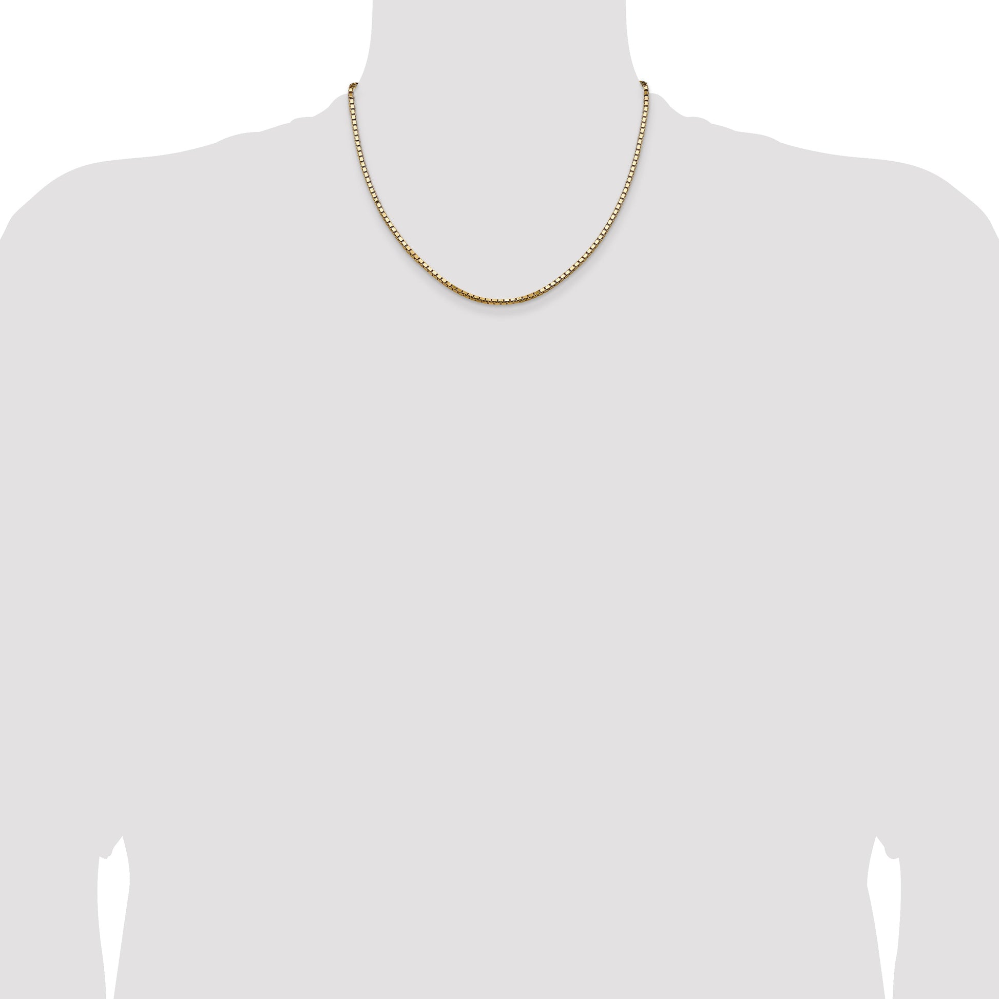 Discover the elegance of the 14K Yellow Gold 18 Inch 2.5mm Box Chain with Lobster Clasp. This polished, solid gold chain offers a timeless design, perfect for any occasion. Measuring 18 inches in length and 2.5mm in width, it showcases the classic box chain style, which adds a hint of sophistication to any outfit. The lobster clasp ensures secure wear, making it an ideal piece for everyday use or special events. Elevate your jewelry collection with the 14K Yellow Gold 18 Inch 2.5mm Box Chain with Lobster Clasp.