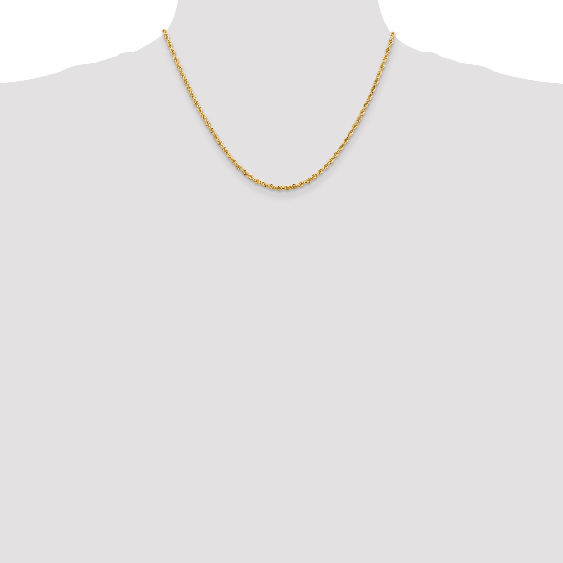 The 14K Yellow Gold 18 Inch 2.75mm Diamond-Cut Quadruple Rope Lobster Clasp Chain is a must-have piece for any jewelry lover's collection. Crafted with polished 14K yellow gold, this 18-inch rope chain dazzles with its eye-catching diamond-cut texture and solid build. Measuring 2.75mm wide, it offers both elegance and durability. The chain features a secure lobster clasp, making it easy to wear. Whether worn alone or paired with a pendant, the 14K Yellow Gold Diamond-Cut Rope Chain promises timeless sophistication. Perfect for any occasion, it's a staple in women's fine jewelry.