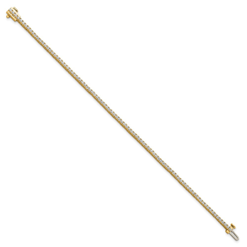 Introducing the 14K Yellow Gold 2 Carat Lab Grown Diamond Vs/Si+ G+ Complete Tennis Bracelet. This stunning piece features 40 and 50 lab-grown diamonds that sparkle bright with a VS+ clarity and F+ color grade. The polished 14K yellow gold adds warmth and durability, making it perfect for everyday wear or special moments. The bracelet measures 7 inches long and has a sleek 2mm width, secured with a sturdy box catch clasp. Designed with faceted round stones, it delivers a radiant shine that commands attention. Elevate your style with the elegance of the 14K Yellow Gold 2 Carat Lab Grown Diamond Tennis Bracelet today.