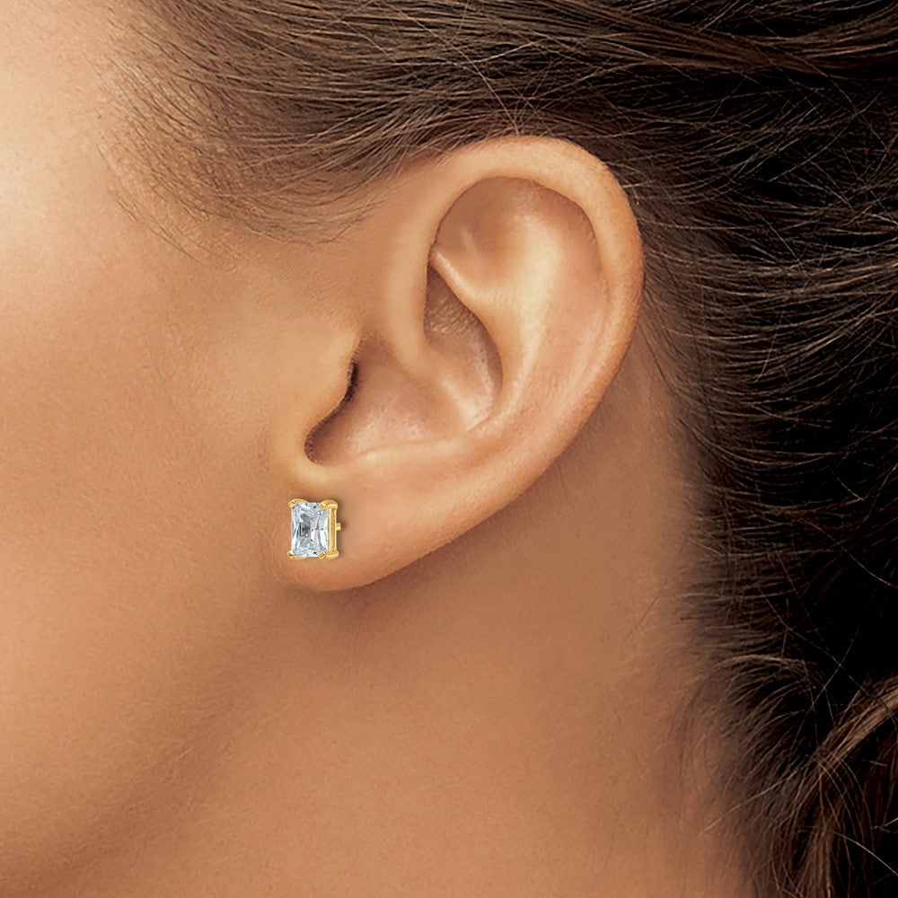 Discover the beauty of the 14K Yellow Gold 2 Ctw Lab Grown Diamond Vs+ F+ Radiant 4 Prong Heavy Wt. Stud Earrings. These stunning earrings feature bright white lab-grown diamonds, each with a 7x5 radiant cut that adds sparkle and style. Crafted from solid 14K yellow gold, they feel sturdy and look rich. The four-prong setting keeps the diamonds secure and shows off their brilliance. With a polished finish, these earrings are perfect for any day or night look. The easy post and push back make them comfy to wear. The 14K Yellow Gold 2 Ctw Lab Grown Diamond Vs+ F+ Radiant 4 Prong Heavy Wt. Stud Earrings blend elegance and shine effortlessly.
