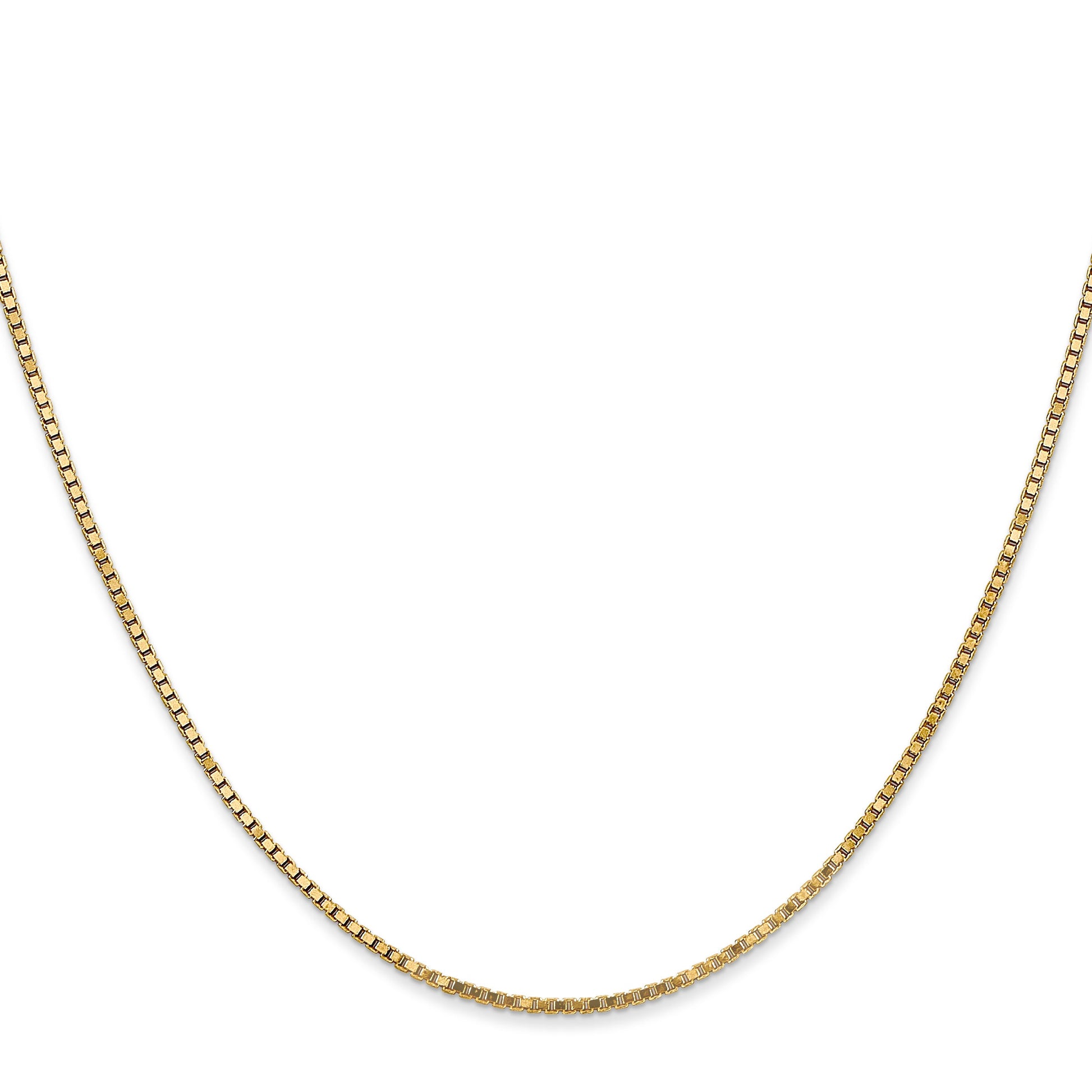 Discover elegance with our 14K Yellow Gold 20 Inch 1.3mm Box Chain Necklace. This polished piece shines brilliantly, measuring a perfect 20 inches in length. The box chain design, combined with a secure lobster clasp, offers a timeless look. Crafted with precision, this solid gold necklace is machine-made for durability and quality. At 1.3mm wide, it's a delicate yet strong accessory, ideal for any woman's jewelry collection. Enhance your style effortlessly with the 14K Yellow Gold 20 Inch 1.3mm Box Chain Necklace.
