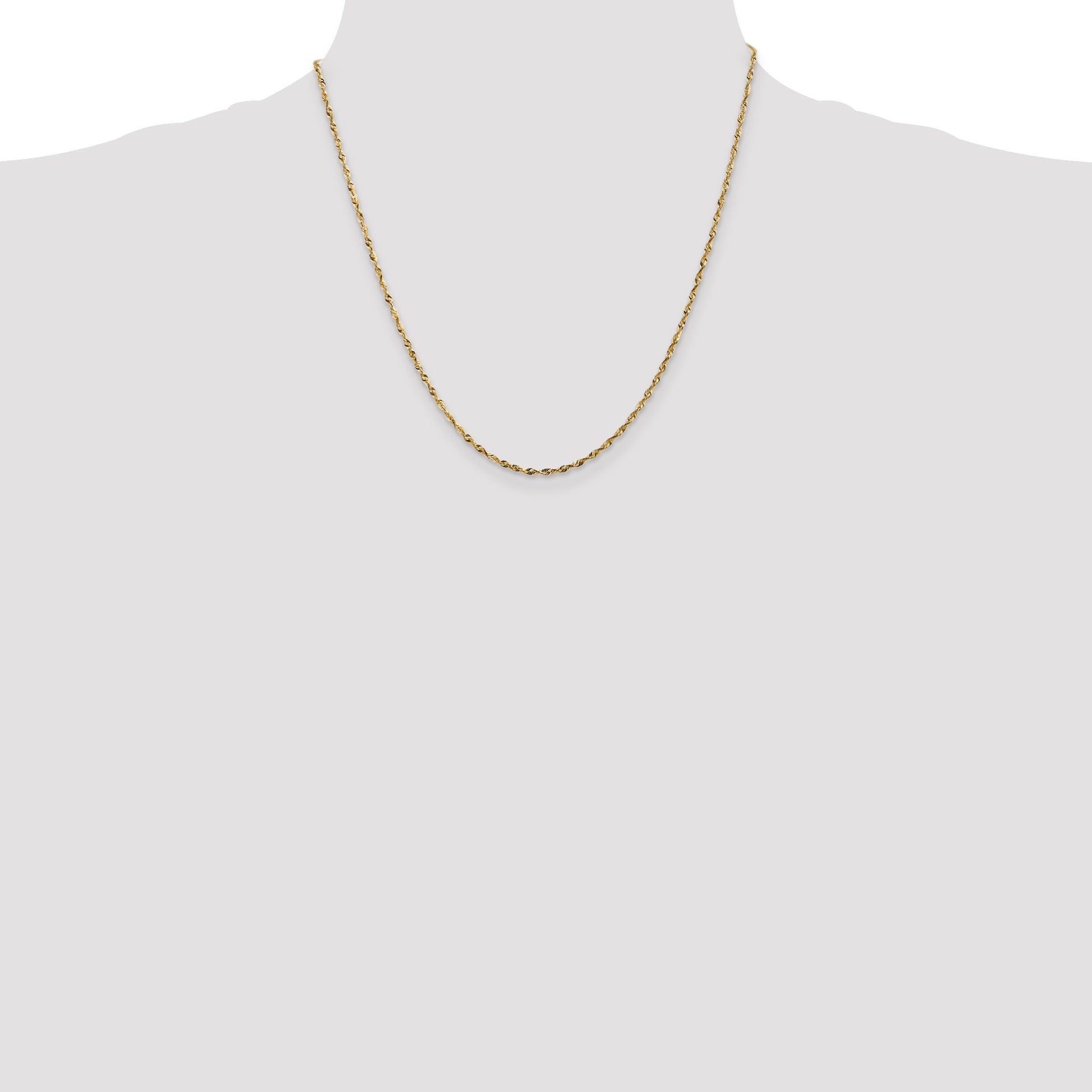 Introducing the 14K Yellow Gold 20-Inch Extra Light Diamond-Cut Rope Chain, a stunning piece of jewelry that enhances any look. Crafted from high-quality 14K gold, this polished chain gleams with elegance. The 1.8mm width and diamond-cut texture add a touch of sophistication. Its 20-inch length drapes beautifully, highlighted by a secure lobster clasp. Solid yet lightweight, it promises comfort alongside style. Perfect for women who appreciate fine craftsmanship, this 14K Yellow Gold 20-Inch Extra Light Diamond-Cut Rope Chain is an essential addition to your jewelry collection.